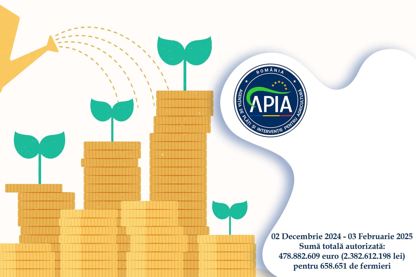 Agenția de Plăți și Intervenție pentru Agricultură (APIA) a autorizat la plată peste 92,5% din totalul fermierilor declarați eligibili în campania aferentă anului de cerere 2024.