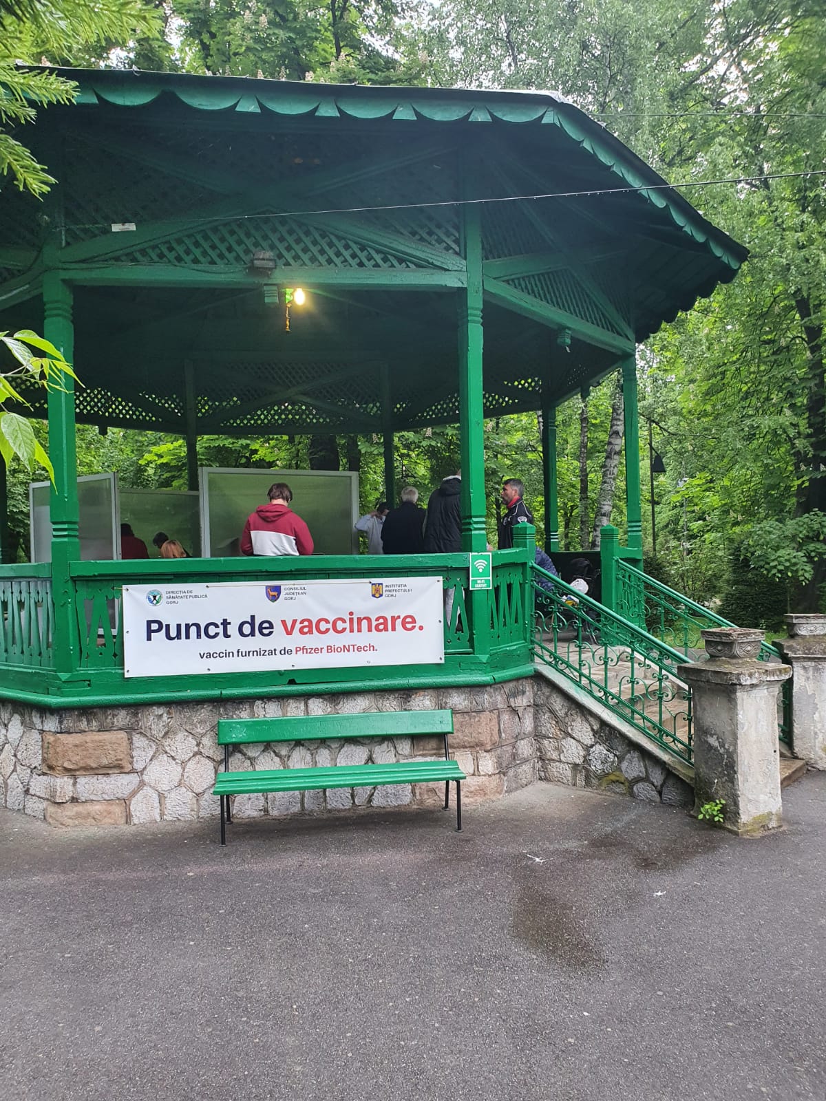 În ciuda vremii nefavorabile, în parc s-au vaccinat de dimineață până în prezent 70 de persoane iar ieri alte 108.