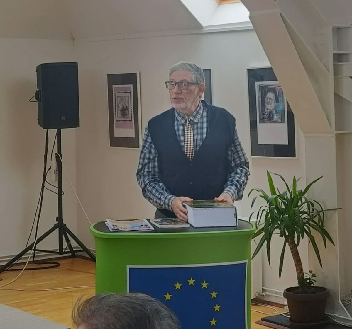 Eu am deschis sesiunea de lansări cu cele două cărți ale mele: o fundamentală „istorie transmodernistă a literaturii române contemporane” intitulată „Scriitori români contemporani și cărțile lor esențiale” [3] și volumul de alegorii și parabole „Meditații secrete” apărut la editura Limes, în mai 2025 [4]. Mi-a urmat Carmen Dora Steinhagen cu tricartea „Fără anestezie” cu o prefață scrisă de mine „Tricarte de poezie, deplină maturitate a metaforării” [5]. Imediat, Lazăr Popescu a oficiat ieșirea în lume a „Pustnicului” lui Nicolae Rădoi [6], cu o cronică literară competentă „Nicolae Rădoi la o nouă carte”; prefața cărții de povestiri SF (care conține și nuvela „Pustnicul” – o capodoperă – n.n. IPB) îmi aparține tot mie.