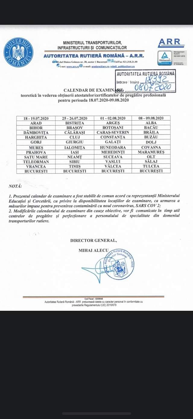 ARR: Calendarul de examen proba teoretică pentru obţinerea atestatului de pregătire profesională
