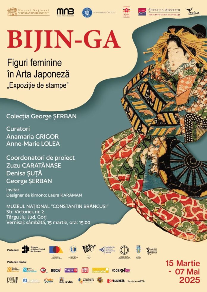 Muzeul Național „Constantin Brâncuși” organizează sâmbătă, 15 martie, de la ora 15:00, vernisajul expoziției de stampe japoneze „Bijin-ga: Figuri feminine în Arta Japoneză”. Expoziția, curatoriată de Anamaria Grigor și Anne-Marie Lolea, aduce în fața publicului o parte din colecția avocatului George Șerban, explorând tematica Bijin-ga (lit. imagine a unei femei frumoase). Acest tip de stampă se referă la diverse portrete ale unor frumuseți ale vremii și este unul dintre cele mai îndrăgite genuri ale artei ukiyo-e.