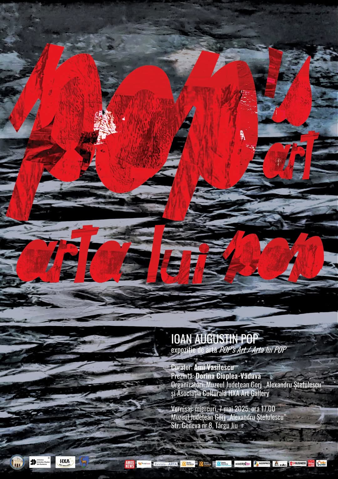 Mâine, 7 mai 2025, ora 17:00, la Muzeul Județean Gorj „Alexandru Ștefulescu” din Târgu Jiu va avea loc vernisajul expoziției de artă „POP’s Art/Arta lui POP”, semnată de cunoscutul artist Ioan Augustin Pop.