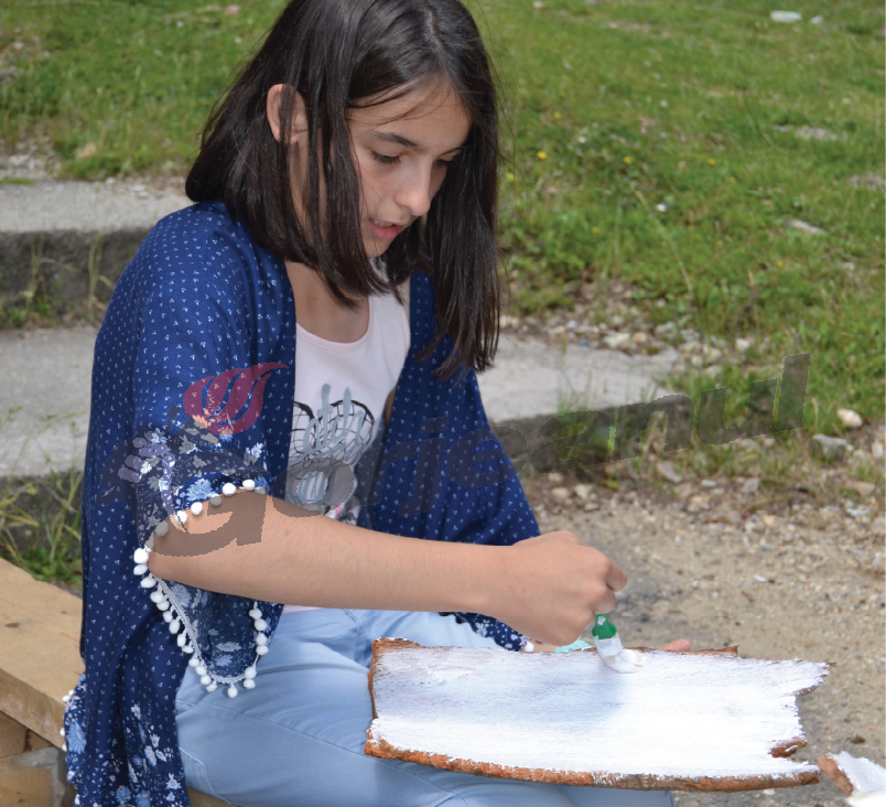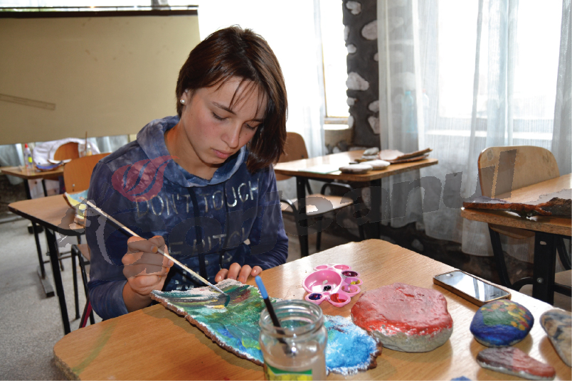 Plecând de la simplu la complex, începutul a fost dedicat tehnicilor de lucru în hârtie (tehnica şerveţelului) aplicată pe sticlă şi piatră. Următorul pas a fost trecerea la pictura pe lemn – scoarţa de copac, iar la final s-a ajuns la pictura pe sticlă. Participanţii la Tabăra Tematică de Artă Plastică organizată de White Wolf au lucrat timp de şase zile câte 4-5 ore, astfel încât să se poată parcurge, sub îndrumarea instructorilor, toată tematica programată.