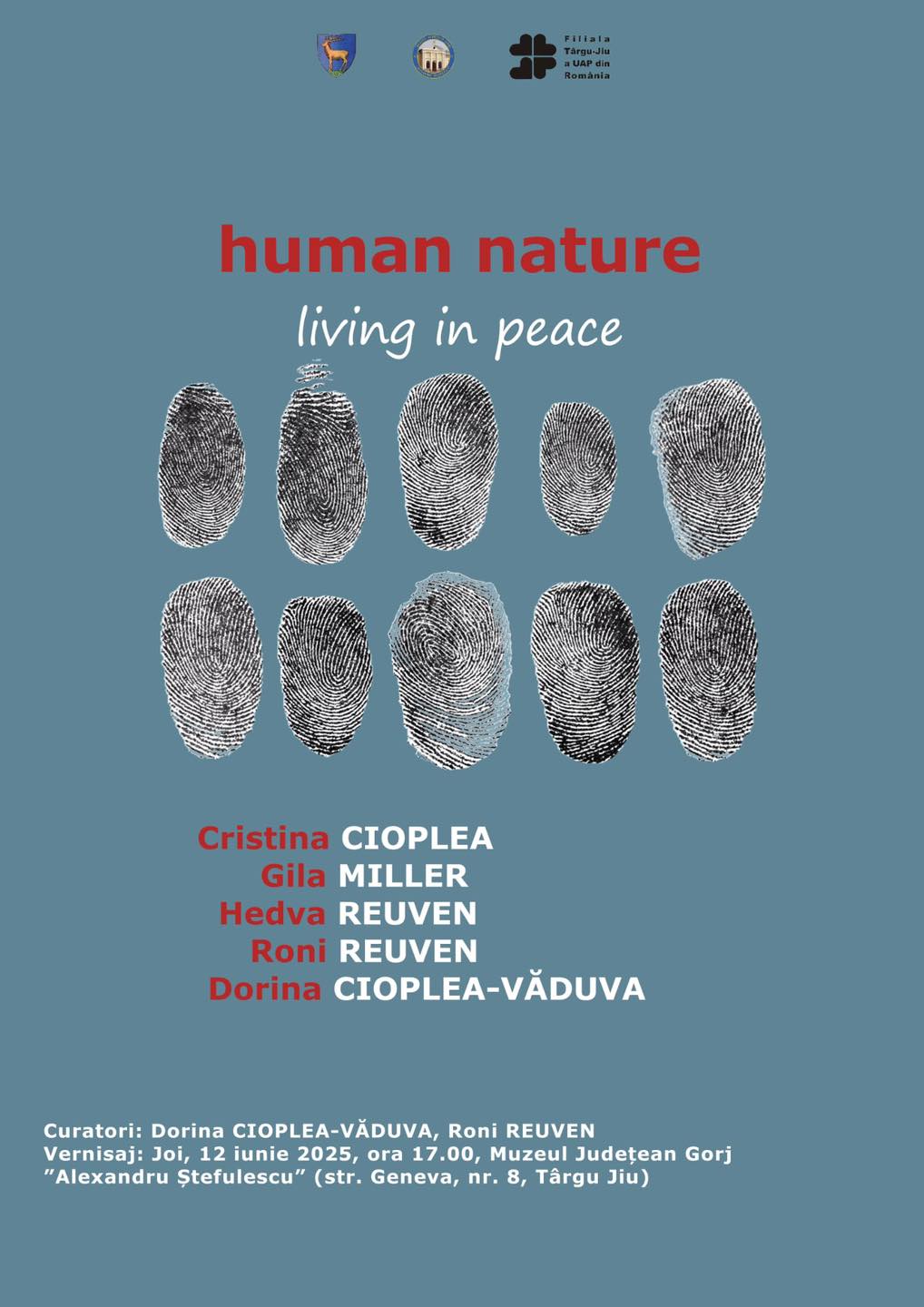 Târgu Jiu devine astăzi gazda unui eveniment artistic cu o semnificație profundă: ”Human Nature. Living in Peace”. Dublul vernisaj reunește lucrările a zeci de artiști români și israelieni într-un demers comun de explorare a naturii umane și a ideii de pace, într-un context în care arta devine mijloc de comunicare interculturală și de reflecție profundă.