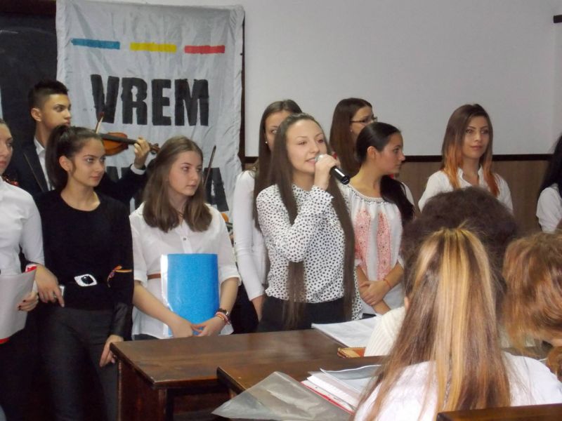 Prof. Adrian Popescu (religie, cu drag numit de toţi, elevi şi profesori, padre), coordonatorul activităţii, anunţă în final câştigătorii concursului „Aşa a fost la Unire” pe care îi prezentăm: