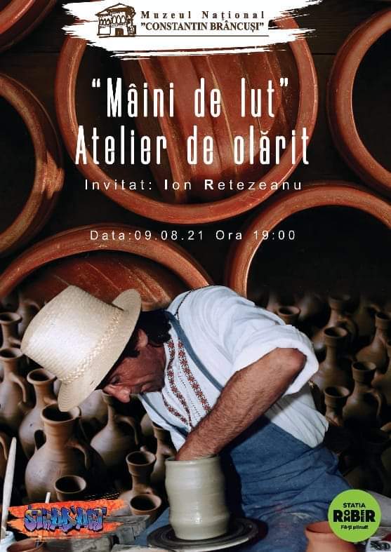 La Muzeul Național „Constantin Brâncuși”, în „Grădina cu vietăți de piatră”, în perioada 9-15 august, se va organiza un atelier de olărit și o expoziție cu vânzare a meșterului popular Ion Retezeanu.