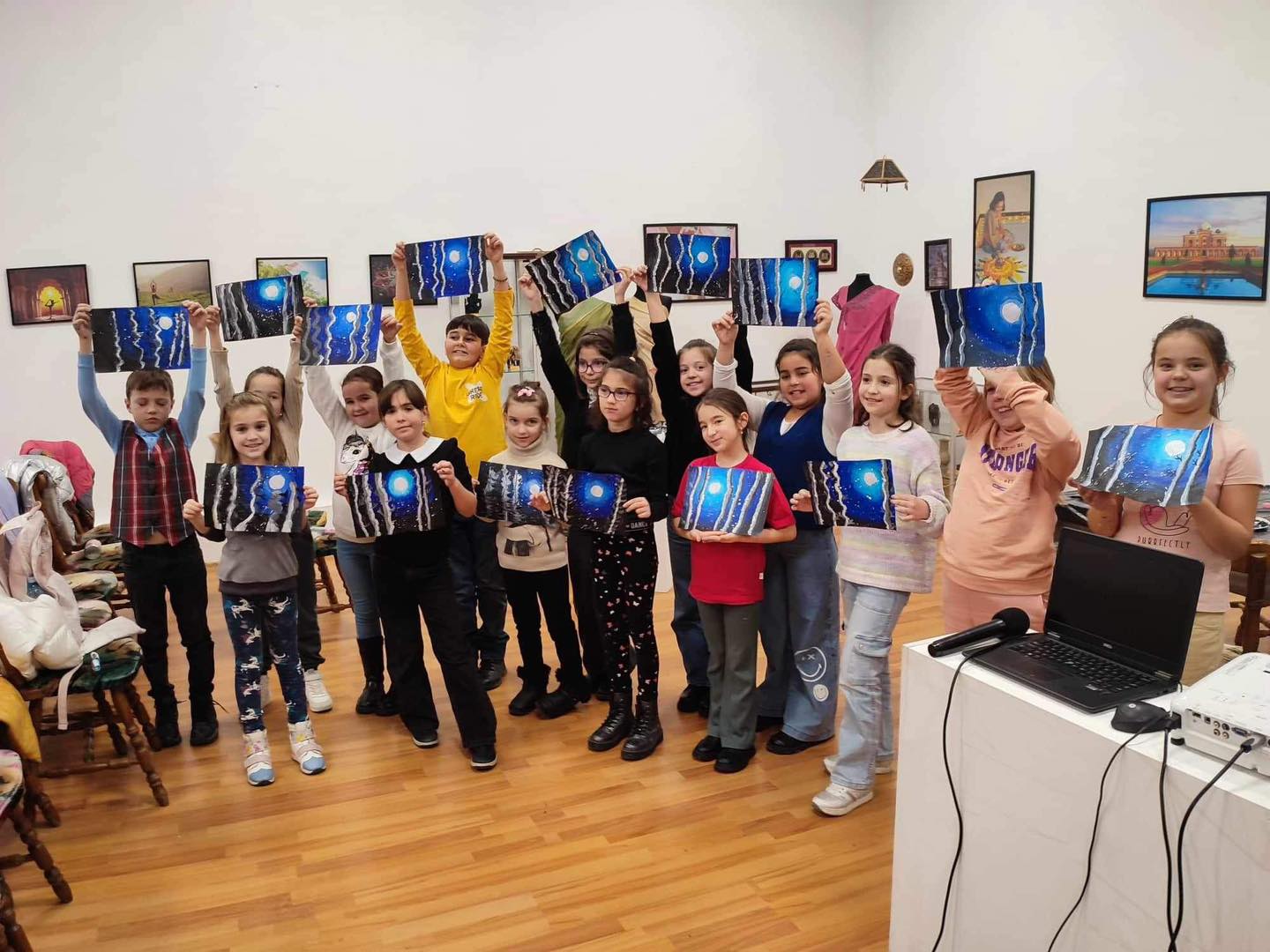 În cadrul programului, participanții, printre care și o clasă de elevi ai Școlii Gimnaziale „Constantin Săvoiu” din Târgu Jiu, au vizitat expoziții de istorie și arheologie, precum și de pictură, au fost protagoniștii unui joc de concentrare, în cadrul căruia au experimentat și oratoria, după care au participat la un atelier de pictură. Ei au pictat luna, văzută dintr-o pădure de mesteacăn, printre fulgi de nea, experimentând redarea efectului de umbre și lumini, pentru obținerea iluziei optice 3D pe o foaie de bloc 2D. Micii pictorași, ca și părinții lor, au fost foarte încântați de lucrările realizate.