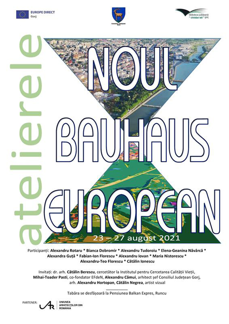 Frumos înseamnă soluții durabile care creează un echilibru între zonele construite și ecosistemele planetei. Putem realiza acest lucru printr-o abordare regenerativă inspirată de ciclurile naturii, adică reconstituind resursele și protejând biodiversitatea. Frumos înseamnă experiențe care ne îmbogățesc, inspirate de creativitate, artă și cultură și răspunzând altor nevoi decât cele materiale. Înseamnă să apreciem diversitatea și să vedem în ea o oportunitate de a învăța unii de la alții. Atelierele propuse de EUROPE DIRECT GORJ ȘI Biblioteca Județeană ,,Christian Tell” sunt îndreptate către acest nou concept în care se întrepătrund arta, cultura, incluziunea socială, știința și tehnologia. Prin aportul tinerilor gorjeni, studenți la facultăți de arhitectură din țară, și a specialiștilor invitați se urmărește cunoașterea și deschiderea unor perspective spre noi moduri de viață pentru un viitor durabil, integrator și frumos pentru minte și suflet. Ateliere cuprind, pe lângă partea practică, ședințe de Design Thinking pentru un spațiu comunitar centrat pe oameni și o dezbatere – Clădiri pentru un stil de viață mai ecologic – în care să se creeze o întâlnire între experiență și viziune tinerească având ca țintă soluții pentru problemele urbane europene (românești) cotidiene”, au anunțat organizatorii. Participanți: Alexandru Rotaru, Bianca Dobromir, Alexandru Tudoroiu, Elena-Geanina Năvârcă, Alexandra Guță, Fabian-Ion Florescu, Alexandru Iovan, Maria Nistorescu, Alexandru-Teo Florescu, Cătălin Ionescu. Invitați: dr. arh. Cătălin Berescu, cercetător la Institutul pentru Cercetarea Calității Vieții, curatorul secțiunii Arhitectură verde, sustenabilă al Bienalei Naționale de Arhitectură 2021, Mihai-Toader Pasti, co-fondator EFdeN, Alexandru Cămui, arhitect șef Consiliul Județean Gorj, arh. Alexandru Hortopan, Cătălin Negrea, artist vizual.