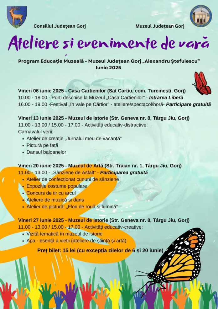 La Târgu Jiu, vara se deschide cu energie, culoare și creativitate, chiar din inima culturii locale. Muzeul Județean Gorj „Alexandru Ștefulescu” invită publicul de toate vârstele să participe, în luna iunie, la o serie de ateliere interactive, spectacole și activități educative, desfășurate în locații emblematice din oraș și dedicate celor care vor să înceapă sezonul cald cu inspirație și bucurie.