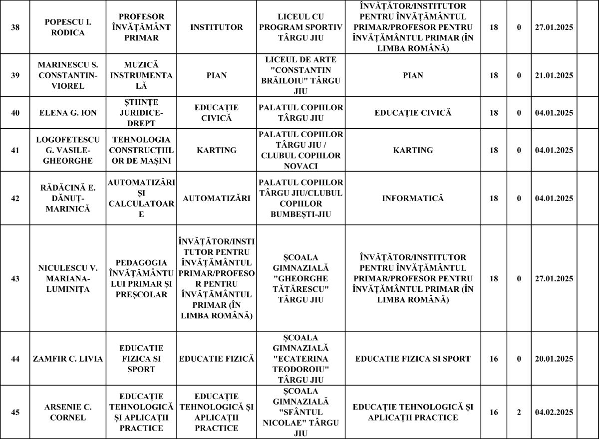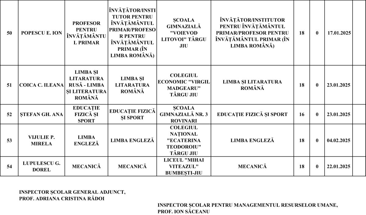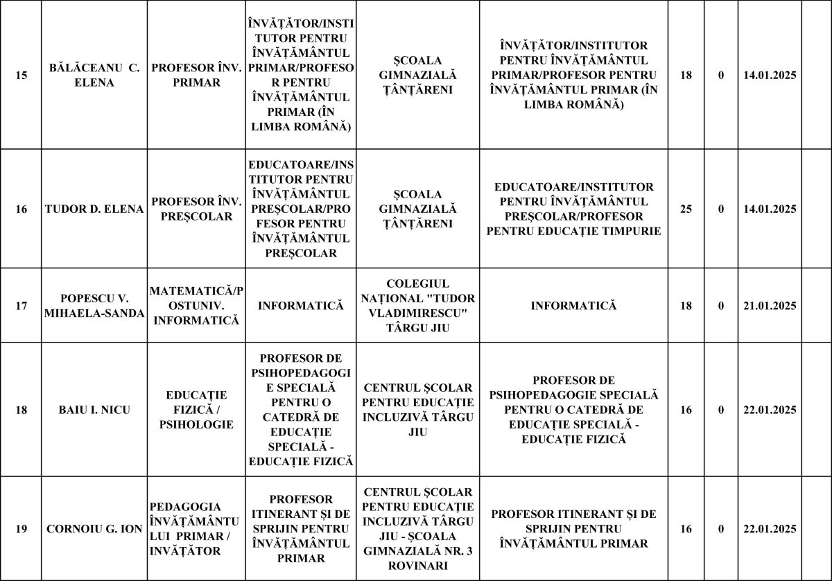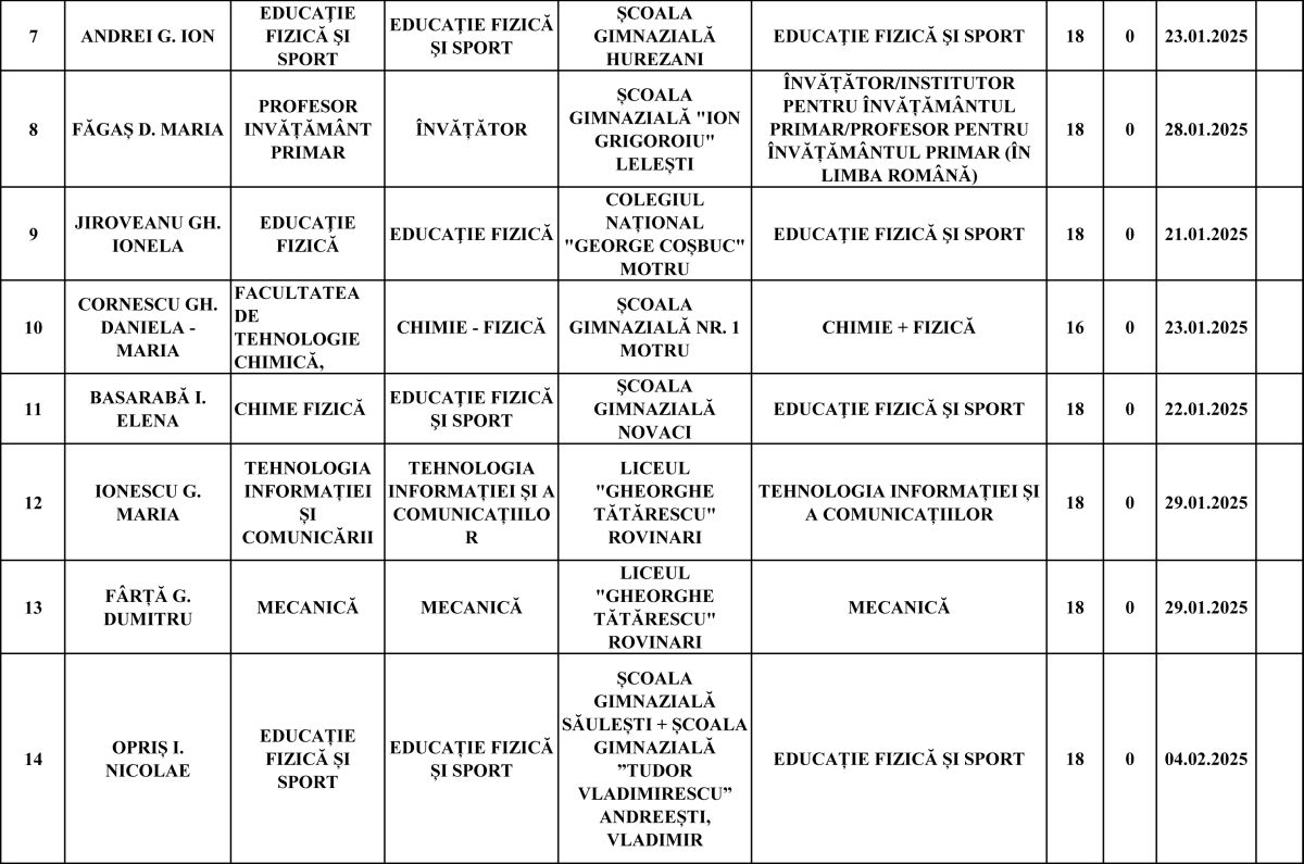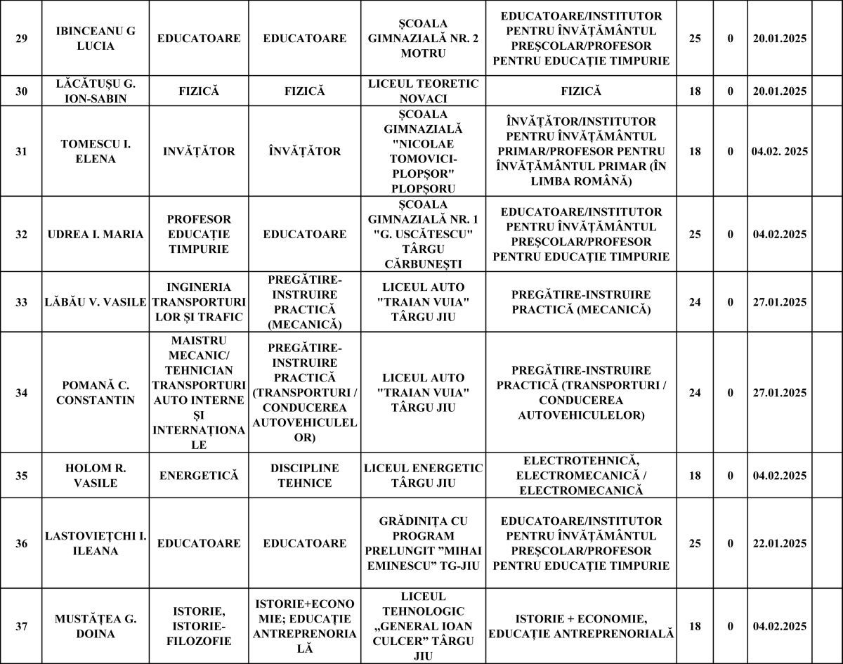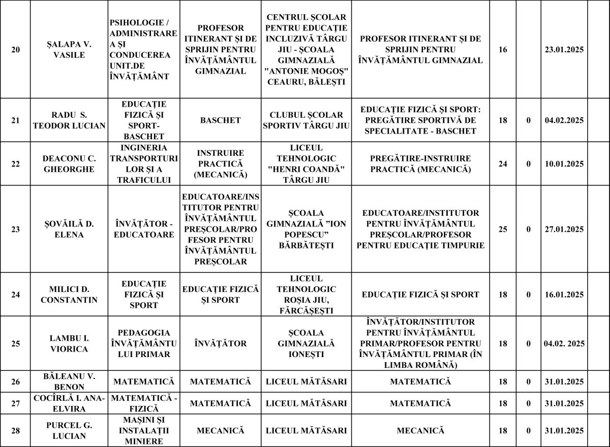 Cei mai mulți vor rămâne pe posturi de învățător-educator (20), profesori de sport (4), matematică (3) și în alte domenii precum chimie, fizică, informatică, limba engleză, educație civică sau mecanică.