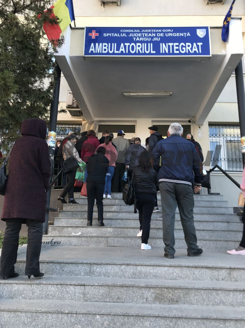 Peste 100 de persoane s-au strâns la un moment dat, ieri dimineață, la intrarea în policlinica din cadrul Spitalului Județean de Urgență Târgu-Jiu, după ce accesul pacienților a fost drastic restricționat. Chiar dacă oamenii aveau programare la diverse cabinete medicale accesul nu a fost permis la mai mult de 2-3 persoane odată și, ca urmare, s-a format o coadă ca în vremurile de tristă amintire. Mai mult, după ce treceau de ușa de acces, cei cărora li se permitea intrarea în policlinică nu ajungeau imediat la medici, ci trebuiau să completeze o declarație epidemiologică, fapt care îngreuna și mai mult lucrurile. În declarația respectivă fiecare persoană trebuia să precizeze dacă a fost în ultima vreme în vreuna dintre zonele afectate de coronavirus de pe glob, la fel cum fac și românii reveniți acasă din străinătate atunci când ajung la vamă.