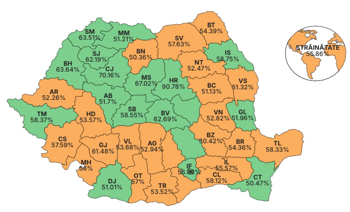 Deși a intrat în turul doi cu cel mai mic scor din istorie pentru un finalist, Nicușor Dan a reușit să răstoarne complet rezultatul și să devină noul președinte al României, obținând 53,60% din voturi la nivel național. În spatele acestei victorii s-a aflat o mobilizare deosebită în urbanul mare, chiar dacă în județe precum Gorj, votul a fost covârșitor pentru Simion.