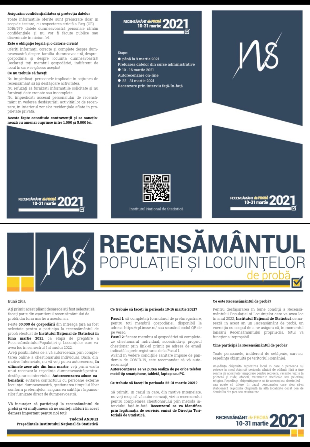 Pasul 1: să completați formularul de preînregistrare, pentru toți membrii gospodăriei, disponibil la adresa: https://rpl.insse.ro/ sau scanând codul QR de pe verso.