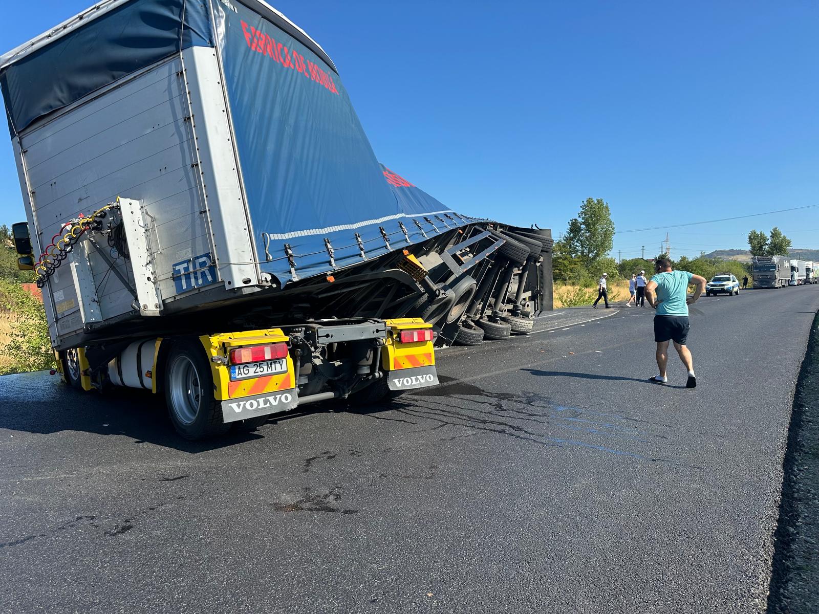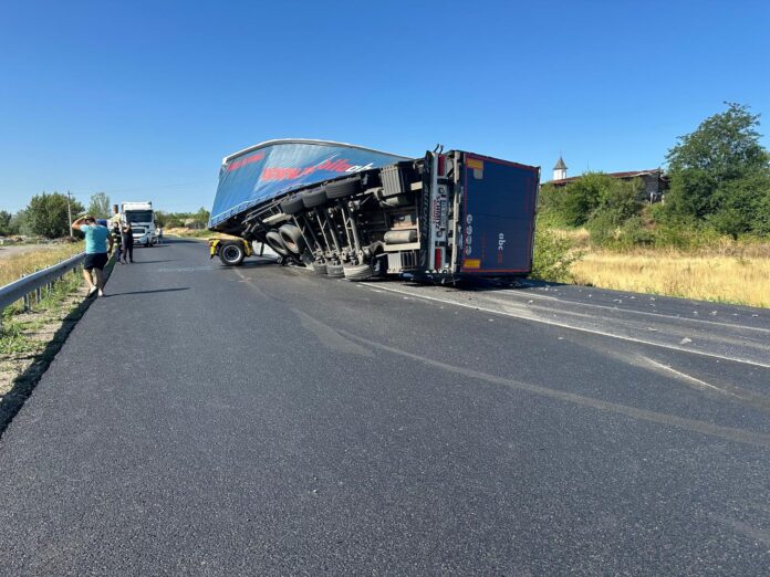 Autotren răsturnat pe centura Severinuluui. UPDATE: Se circulă pe un sens până la sosirea utilajelor care să elibereze șoseaua. DRDP Craiova anunță că traficul este blocat, la această oră, pe centura municipiului Drobeta Turnu Severin, din cauza unui accident produs în urmă cu puțin timp, un autotren răsturnându-se pe carosabil. ”Din cauza unui accident rutier în care a fost implicat un autotren încărcat, circulația rutieră este blocată pe ambele sensuri de mers. La fața locului acționează angajații SDN Severin pentru reluarea circulației pe un sens în cel mai scurt timp”, au transmis reprezentanții Direcției regionale.