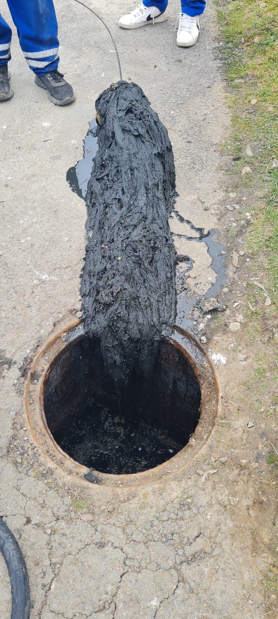 Echipele de intervenție au descoperit în conducte cantități alarmante de materiale textile, șervețele umede, resturi menajere, uleiuri și alte deșeuri care nu au ce căuta în rețea.