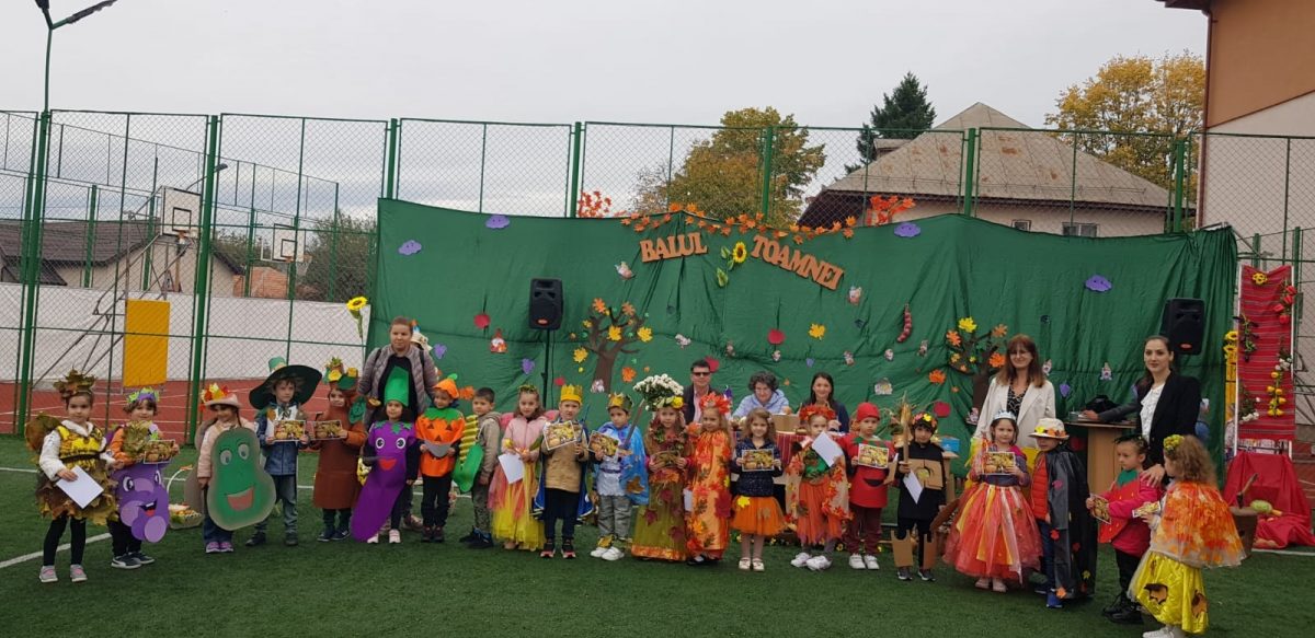 Prichindeii au purtat costume din materiale reciclabile, respectând tema balului – toamna și au luat parte la un concurs de dovlecei sculptați.