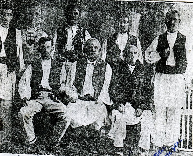 Comitetul de conducere a Băncii Poplare. Cei care stau pe scaune de la stânga la dreapta Petre Grindeanu, contabil din anul 1912, Constantin Văcaru primul preşedinte al Băncii şi bunicul meu Toma Semenescu iniţiatorul înfiinţării băncii, iar în picioare primii depunători cu bani pentru mărirea capitalului la bancă.