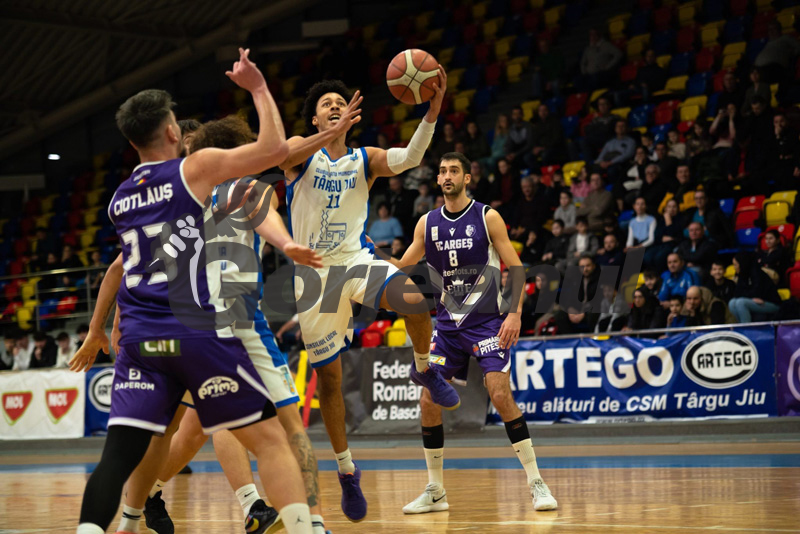 CSM Târgu Jiu a făcut un meci bun, timp de trei sferturi, cu FC Argeș. Gorjenii s-au ținut scai de favoriți, dar au cedat într-un final, 79-93, în care piteștenii, echipa mai masivă și mai eficientă, au profitat din plin de greșelile amfitrionilor. Trupa lui Vanja Miljkovic a pierdut doar două perioade de joc (18-24, 21-21, 26-24, 14-24), dar ultimele zece minute s-au încheiat cu 10 puncte în plus pentru ,,vulturi”, care se mențin pe podiumul Ligii Naționale de Baschet Masculin. Partida de la Târgu Jiu a contat pentru etapa a 20-a din campionat. Americanii au fost din nou la putere în tabăra alb-albaștrilor. Colin Cooper a terminat cu index 15 la eficiență, și a dat 18 puncte. Marcus Evans a avut 20 puncte, iar Lewis Djonkam 11. De la piteșteni, Dokovic a fost cel mai bun marcator al meciului, cu 26 de puncte. De altfel, aruncările de la semidistanță au fost un atuu evident pentru ,,violeți”. Jucător de bază la echipa oaspete, gorjeanul Tudor Șomăcescu s-a accidentat în sfertul doi, și nu a mai revenit pe parchet.