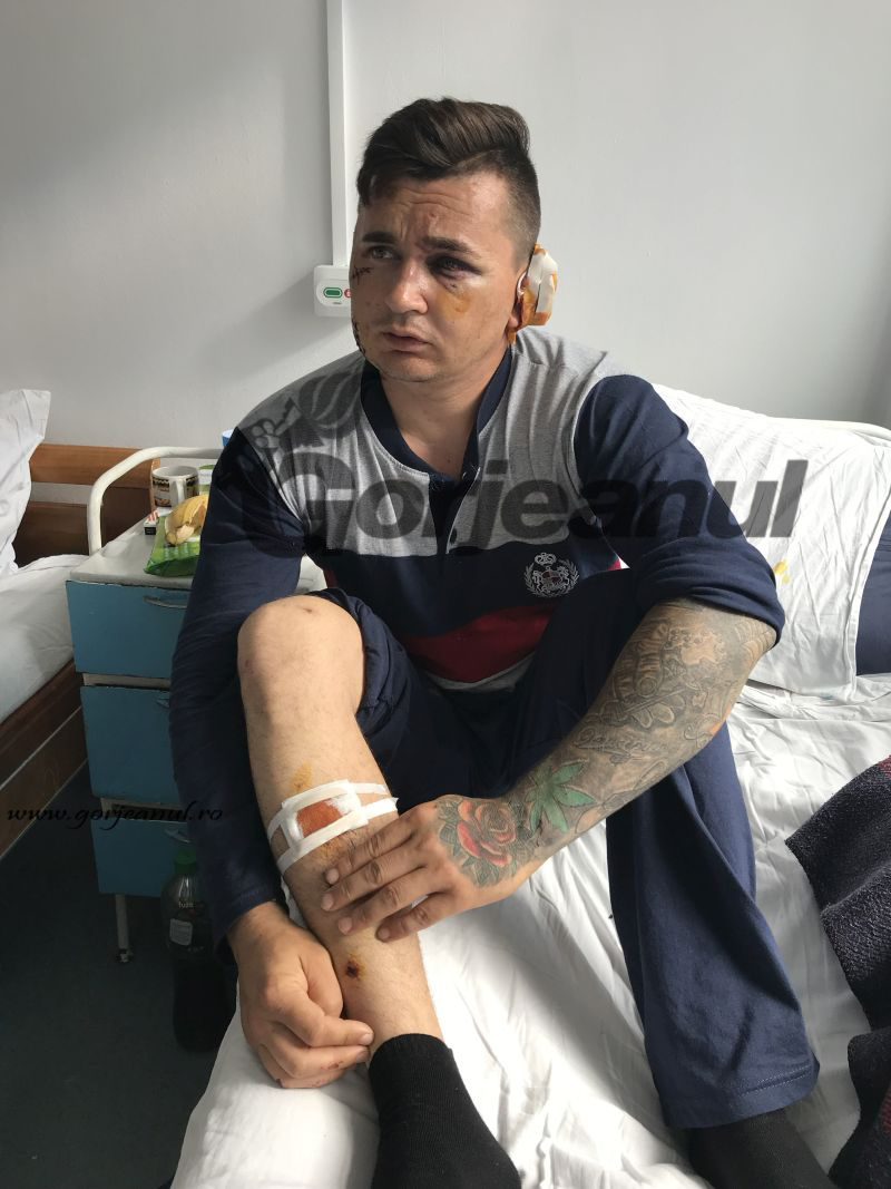 „Au venit peste 20 de persoane și el a fugit spre sediul Poliției. A fost prins, pus jos și lovit cu leviere, sticle de bere, ce aveau în mână. Totul s-a întâmplat în ușa Poliției, că cică sunt doar doi polițiști, care nu erau aici în acele momente. Am sunat la 112, dar până au venit polițiștii aici, el era deja mutilat. L-au tăiat, i-au smuls o ureche și sângera abundent de am crezut că moare”, spune mătușa victimei. Bărbatul lovit cel mai rău a fost dus la spital la Târgu-Jiu, unde medicii au reușit să îi refacă inclusiv urechea smulsă, nu doar să îi oprească pierderea de sânge. „A venit un bolnav într-o stare destul de gravă pentru că sângera de pe față din toate zonele. De urgență am intrat cu el la sala de operație. Am oprit hemoragiile, am făcut suturi și ligaturi de vase după care pentru că avea la urechea stângă o contuzie mare, cu lipsă de substanță, adică îi lipsea o bucată mare din ureche, am făcut o reconstrucție cât s-a putut. L-am trimis și să facă un computer tomograf, dar nu prezenta probleme deosebite, cu excepția unei fracturi de oase la maxilar”, a menționat doctorul Gheorghe Stanciu, cel care l-a „reparat” pe Kis în urma scandalului de la Mătăsari.Polițiștii care au făcut cercetări la fața locului au dispus, duminică, a doua zi, reținerea pentru 24 de ore a șase persoane, inclusiv a unei femei care ar fi participat la scandalul respectiv. Ieri, toți agresorii au scăpat însă din spatele gratiilor pentru că procurorii au considerat că nu se impune prezentarea lor la instanță în vederea obținerii unor mandate de arestare preventivă. „La data de 5 mai a.c., polițiști din cadrul Secţiei 3 Poliţie Rurală Motru au reținut pentru 24 de ore și introdus în Centrul de Reținere și Arestare Preventivă al IPJ Gorj, cinci bărbați, cu vârste cuprinse între 29 și 40 de ani, precum și o femeie, de 49 de ani, toți din comuna Mătăsari, bănuiți de săvârșirea infracțiunilor de lovire sau alte violențe și tulburarea ordinii și liniştii publice. Aceștia, în timp ce se aflau pe raza comunei Mătăsari, la data de 4 mai a.c., ar fi exercitat acte de violență asupra a doi bărbați, de 28 și 33 de ani, din aceeași localitate, pe fondul unui conflict mai vechi. Cei în cauză au fost prezentaţi Parchetului de pe lângă Judecătoria Motru cu propuneri corespunzătoare, fiind dispusă luarea măsurii controlului judiciar, pe o perioadă de 30 de zile față de cei în cauză”, a comunicat IPJ Gorj. Ca urmare a acestei decizii, cei agresați spun că se simt în continuare în pericol, mai ales că stau în același bloc cu agresorul lor. „Suntem sunați și ni se spune că ce a pățit cel din spital vom păți și noi. Am spus asta la anchetă și ni s-a spus că ar fi bine să nu mai răspundem la telefon”, a menționat o rudă a celor agresați.