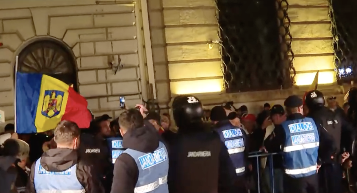 Jandarmii au încercat să-i îndepărteze pe protestatari, însă fără succes. Un jandarm a fost rănit, protestatarii care forțează gardurile aruncând spre forțele de ordine cu sticle și alte obiecte. Jandarmul a fost scos din mulțime.