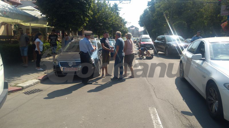 Victima era căzută pe carosabil lângă bicicleta avariată, un bărbat întrebându-l în ce stare este, în timp ce mașina care a provocat incidentul a fost trasă pe strada din dreapta, fiind lăsată cu portierele deschise.