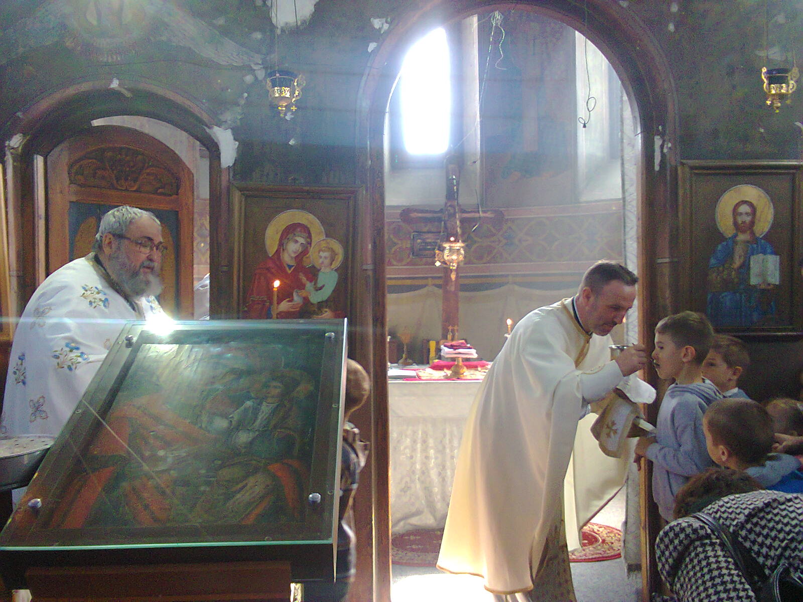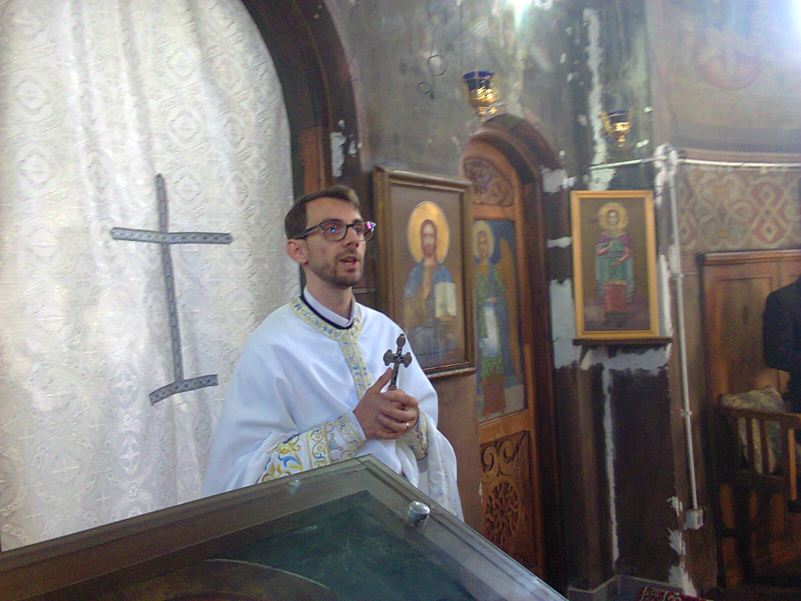 Cu un logos penetrant şi plăcut, Părintele Tenea a precizat că Sf. Mare Muc. Gheorghe, nu a fost singur în lupta pe care o ducea, pentru că Hristos Domnul a fost împreună cu dânsul! ,,Vedeţi, noi, de multe ori renunţăm, deşi, suntem cu dreptatea, nu luptăm până la capăt pentru ea, şi auzim la Sfânta Evanghelie că lumea iubeşte păcatul, minciuna, ceea ce este mai puţin bun! Când îi spui cuiva că greşeşte sau îi spui anumite lucruri care nu sunt bune la el, imediat te dă la o parte, adică, te prigoneşte! De multe ori, nu iubim adevărul, nu iubim bunătatea, ci iubim altceva”, a reieterat Preacucernicia sa! În partea finală a cuvântului său, Preacucernicul Părinte aspus că ne aflăm în perioada bucuriei Învierii Domnului, ne aflăm în perioadă luminată când în sufletele noastre ar trebui să păstrăm în tot cursul anului, nu numai în această perioadă, să fie aprinsă candela faptelor bune şi a credinţei! În fiecare zi din viaţa noastră, Iisus Hristos este supus chinurilor, pentru că Îşi doreşte ridicarea noastră şi învierea noastră! Hristos Îşi doreşte învierea noastră din «somnul» păcatului, de aceea, toţi următorii acestui Sfânt Mare Mucenic Gheorghe, şi să fie precum el, tari în credinţă, să fie purtători de biruinţă, prin aceasta fiind biruit răul, cu credinţa şi cu iubirea de Dumnezeu! Aşadar, să le iertăm pe toate, pentru Înviere! Să iertăm tuturor celor ce ne fac rău, celor ce ne prigonesc, celor ce ne judecă, pentru că Însuşi Domnul Iisus Hristos i-a iertat pe toţi! În încheiere, vorbitorul a spus: ,,Este un moment de aleasă bucurie ca să aveţi acest hram şi acest patron, această comunitate care mă face bucuros ca să văd biserica plină, pentru că rar se întâmplă să văd lumea atât de unită şi de bucuroasă ca să-şi cinstească ocrotitorul, aşa cum dumneavoastră o faceţi acum! Să vă mai spun că Sf. Mare Muc. Gheorghe, purtătorul de biruinţă şi Sf. Mare Muc. Dimitrie, izvorâtorul de mir, sunt sfinţi, mari mucenici şi ocrotitori la cetăţi, la oraşele mari! Iată, şi dumneavoastră sunteţi o «cetate», de aceea, să vă rugaţi sfântului, să-i urmaţi credinţa şi fapta, pentru că vă este rugător înaintea tronului Lui Dumnezeu pentru sufletele care vieţuiesc în această comunitate frumoasă! 23 aprilie este ziua dumneavoastră a tuturor, o zi încărcată de bucurie, de emoţie şi de frumos! Rog pe Bunul Dumnezeu să vă binecuvinteze, să vă bucuraţi de ceea ce aveţi de la Dumnezeu! Ţin să-i mulţumesc Părintelui Paroh pentru invitaţia de a fi astăzi în mijlocul dumneavoastră, şi chiar dacă este pentru prima dată când vin aici, voi reveni mereu cu bucurie! Dumnezeu să vă ajute! Amin”. În finalul ceremonialului religios, Preacucernicul Părinte Paroh Ilie Amzucu le-a mulţumit credincioşilor pentru ajutorul acordat, mulţumirea trebuind să fie adresată cu deosebire neobositei Doamne Preotese, Valentina Amzucu şi tuturor celor care au adus prinoase, deoarece: ,,Atunci când o comunitate este unită, totul este perfect, de aceea, vă mulţumesc tuturor celor care v-aţi implicat în organizarea şi desfăşurarea acestei sărbători, vă mulţumesc pentru răbdarea pe care aţi dovedit-o până la sfârşit, pentru că întotdeauna sfârşitul încununează lucrarea! La mulţi ani tuturor celor care purtaţi numele Gheorghe, iar, în final, vom săvârşi un parastas pentru pomenirea celor care odihnesc în cimitirul din parohia bisericii noastre”!
