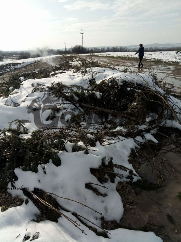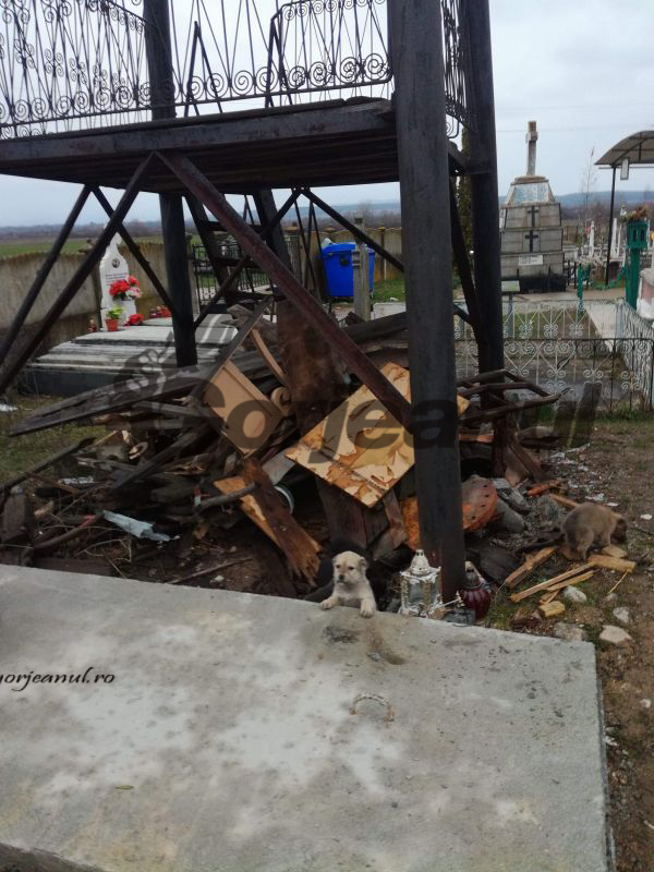 tablă adunate din cimitirul bisericii. Trebuie menționat că în jurul lăcașului se întinde cimitirul satului, destul de ticsit de morminte. Oamenii au fotografiat și niște brazi, culcați la pământ anul trecut, dar care au rămas, în mod inexplicabil, în locul în care au fost tăiați.