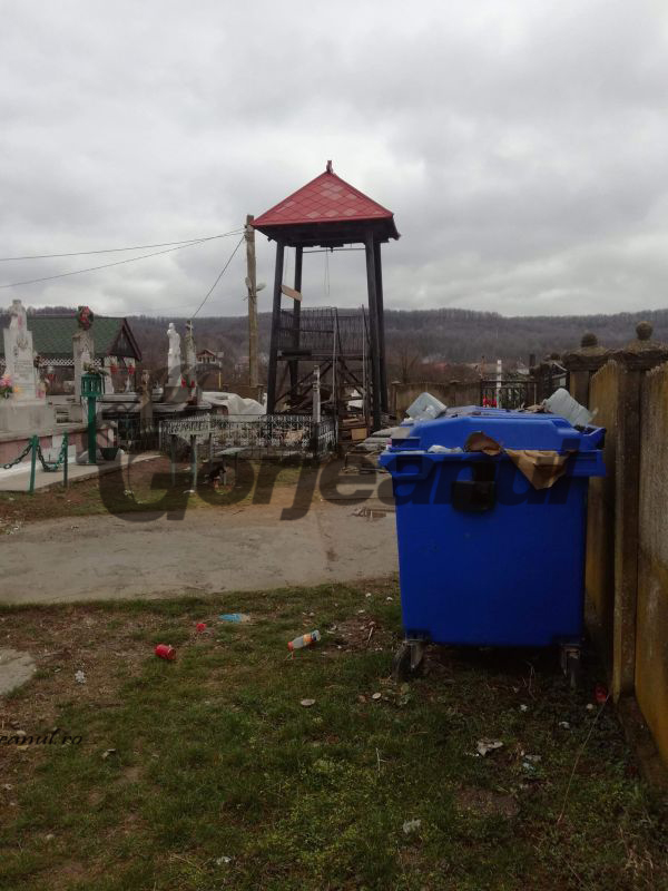 Șomănești. În fotografiile puse la dispoziție de enoriași se văd clar mormanele de mizerie de sub spațiul unde se aprind lumânările pentru vii și morți, felul cum sunt depozitate deșeurile menajere, tomberonul de gunoi din interiorul curții bisericii care dă pe dinafară, în timp ce sub turla de unde se trage clopotul este o grămadă de scănduri putrezite, cruci vechi, resturi de coroane și