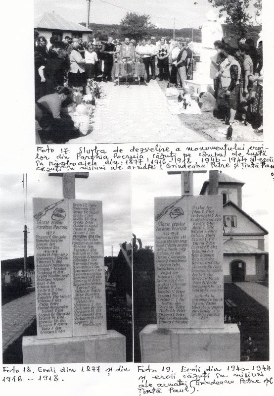 O dorinţă, de multe decenii, ale enoriaşilor din com. Pocruia, de a se ridica un monument în memoria eroilor căzuţi pe câmpul de luptă în războaiele din: 1877, 1916-1919, 1940-1944 şi eroii căzuţi în misiuni ale armatei(Grindeanu Petre şi Ţintă Paul), s-a înfăptuit în ziua de 02-06-2011, când s-a dezvelit monumentul, cu o slujbă de pomenire oficiată de preotul Popescu Vasile Gheorghe (Foto 17, 18, 19).