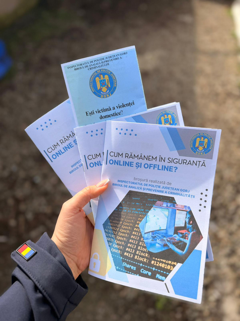 Pentru ca oamenii să fie în siguranță, online și offline, polițiștii gorjeni au găsit o nouă metodă prin care recomandările să ajungă rapid, mai ales în mediul rural. Broșurile vor fi distribuite cu ajutorul Poștei Române.