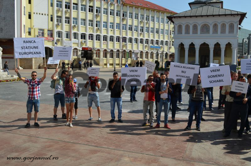 Aproximativ o sută de persoane care administrează cabane și pensiuni din Rânca au protestat, ieri, între orele 12.00 și 14.00, în Piața Prefecturii Gorj. Cabanierii care fac parte din Asociația “Corneșul Mare- Rânca” și-au exprimat nemulțumirea față de lipsa de inițiativă a autorităților locale și județene, privind punerea în funcțiune a lucrărilor de infrastructură, realizate din fonduri europene. Protestatarii au înaintat lista cu revendicări atât prefectului Gheorghe Paraschivu, cât și președintelui Consiliului Județean Gorj, Ciprian Florescu, și așteaptă ca autoritățile să găsească soluții pentru dezvoltarea activității turistice.