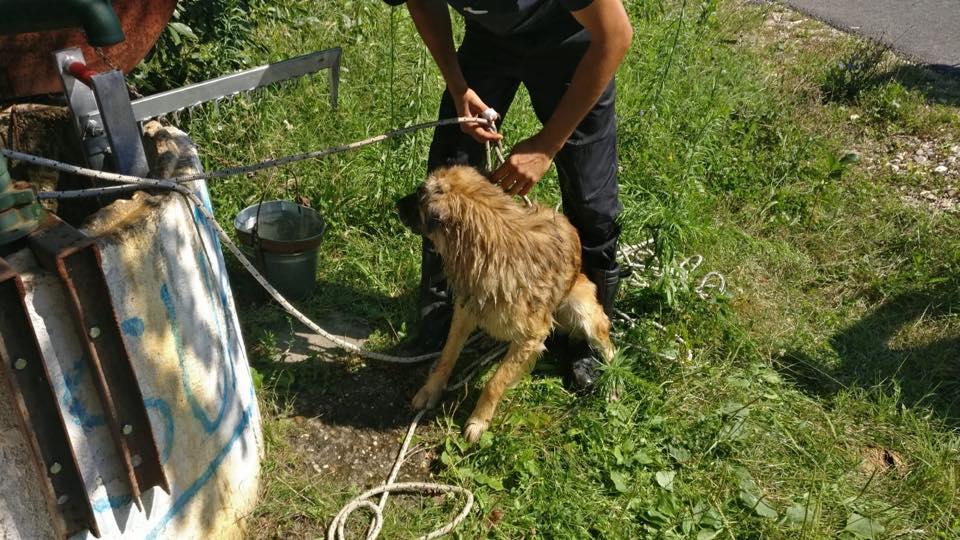 Nu a durat mult și la fața locului, în satul Curtișoara, la o fântână de pe marginea drumului, un echipaj al Detașamentului de Pompieri Târgu-Jiu a intervenit, cu mijloacele din dotare și cu tehnici dobândite în anii de experiență pentru scoaterea câinelui în așa fel încât acesta să nu se sperie mai mult decât era, reușind astfel salvarea lui fără probleme.