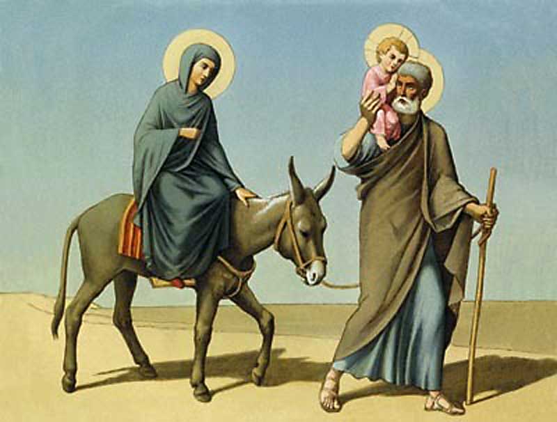 Ca urmare, despre «Fuga în Egipt», Sf. Ev. Matei 2, 13-23, relatează faptul că «După plecarea magilor, iată îngerul Domnului se arată în vis lui Iosif, zicând: „Scoală-te, ia Pruncul şi pe mama Lui şi fugi în Egipt şi stai acolo până ce-ţi voi spune, fiindcă Irod are să caute Pruncul ca să-L ucidă”. Şi sculându-se, a luat, noaptea, Pruncul şi pe mama Lui şi a plecat în Egipt. Şi au stat acolo până la moartea lui Irod, ca să se împlinească cuvântul spus de Domnul, prin proorocul: „Din Egipt, am chemat pe Fiul Meu”. Iar când Irod a văzut că a fost amăgit de magi, s-a mâniat foarte şi, trimiţând, a ucis pe toţi pruncii care erau în Betleem şi în toate hotarele lui, de doi ani şi mai jos, după timpul pe care îl aflase de la magi. Atunci s-a împlinit ceea ce se spusese prin Ieremia proorocul: „Glas în Rama s-a auzit, plângere şi tânguire multă; Rahela îşi plânge copiii şi nu voieşte să fie mângâiată pentru că nu sunt”. După moartea lui Irod, iată că îngerul Domnului s-a arătat în vis lui Iosif, în Egipt, şi i-a zis: „Scoală-te, ia Pruncul şi pe mama Lui şi mergi în pământul lui Israel, căci au murit cei ce căutau să ia sufletul Pruncului”. Iosif, sculându-se, a luat Pruncul şi pe mama Lui şi a venit în pământul lui Israel. Şi auzind că domneşte Arhelau în Iudeea, în locul lui Irod, tatăl său, s-a temut să meargă acolo şi, luând poruncă, în vis, s-a dus în părţile Galileii. Şi, venind, a locuit în oraşul numit Nazaret, ca să se împlinească exact ceea ce s-a spus prin prooroci, că Nazarinean Se va chema» Domnul şi Mântuitorul nostru Iisus Hristos. Totuşi, în scrierile cunoscute ale proorocilor, iar, aici ne referim la acelea care s-au păstrat, nu găsim nicăieri precizarea că Domnul Iisus Hristos, va fi numit Nazarinean, deşi, e posibil ca această proorocire să fi fost în vreo carte care să se fi pierdut în desele peregrinări ale israeliţilor prin ţinuturi mai îndepărtate, poate chiar în ruinele jefuite ale Ierusalimului, asemeni unei predanii nescrisă, purtată în decursul evenimentelor de la o vreme la alta. Şi chiar dacă sunt pagini ale Noului Testament în care Apostolii vorbesc despre citate de proorocie, ca şi cum acestea ar fi foarte cunoscute, ele nu se găsesc în Vechiul Testament! Orice popor, în bogăţia sa spirituală are mai multă proorocie nescrisă decât scrisă, mai multă cultură populară nescrisă, decât scrisă, aşa că, de ce n-ar trebui să fie la fel şi cu iudeii, pentru ca noi să înţelegem pe deplin întreaga existenţă pământeană a Domnului Iisus din Nazaret! În acest fel, Biserica ne aduce aminte de fuga în Egipt a lui Iisus, pentru că nu întâmplător, Mântuitorul, încă de la începutul prezenţei Sale pe acest pământ, nu a avut parte de acceptare, nici măcar de îngăduinţă, deoarece, până în ultima clipă I-au stat împotrivă cărturarii, fariseii şi conducătorii poporului, până în ultima clipă a trebuit să dea explicaţie şi să I Se ceară socoteală pentru vindecări, pentru învieri şi chiar pentru învăţătura Sa, pentru că este Fiul lui Dumnezeu, iar, prin tot ceea ce a creat şi creează mereu, Dumnezeu Tatăl, prin Fiul Său şi prin lucrarea Duhului Sfânt, încearcă să ne alunge îndoiala din suflet şi să trăim viaţa în lumină!