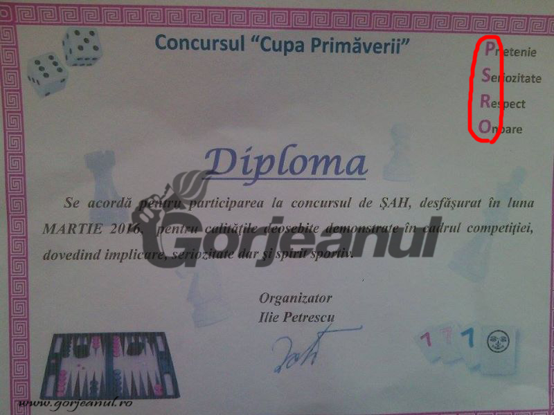 Diplomele oferite participanților la “Cupa Primăverii” purtau inițialele PSRO.