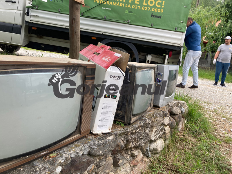 Mi-am dat seama că e ceva și atunci am stat și eu pe aici ca să văd când vine mașina. Am mai dat vreo două televizoare înainte, acum încă două și gata, am termina cu cele vechi. Erau inutile și numai de trebuia să ne învârtim după ele prin casă că nici nu știam unde să le ducem și să scăpăm de ele”, a mai spus un localnic. Luis Popa, șeful serviciului care se ocupă cu gestionarea deșeurilor în cadrul Consiliului Județean Gorj, a menționat că oamenii vor avea posibilitatea, în baza unui grafic, să scape de rablele electrocasnice timp de două luni de acum încolo. „Am început o nouă campanie de colectare a electrocasnicelor vechi în județul Gorj, împreună cu partenerii noștri de la Asociația Environ. Suntem bucuroși că anul acesta, față de anul trecut, s-au înscris 62 de unități administrativ teritoriale.