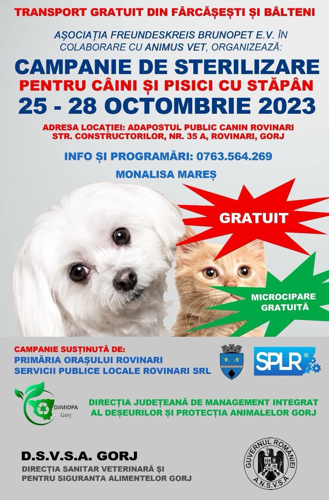 Direcția de Management Integrat al Deșeurilor și Protecția Animalelor Gorj, din cadrul Consiliului Județean Gorj, se va implica în campania de sterilizare organizată de către Adăpost Public Canin Rovinari.