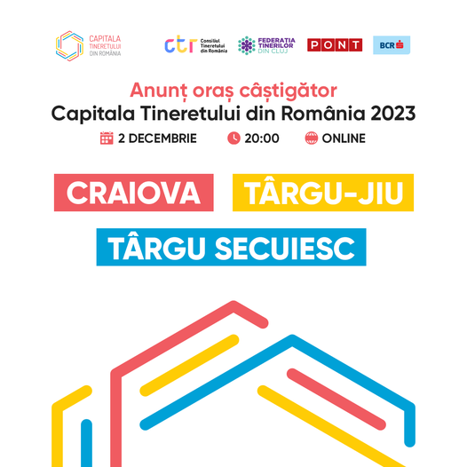 „3 concepte cu și pentru tineri, 3 orașe finaliste, emoție, nerăbdare, proiecte, activități și mii de tineri care abia așteaptă ca orașul lor să fie Capitala Tineretului din România. Pe 2 decembrie, de la ora 20:00, aflăm împreună, live pe Facebook, numele Capitalei Tineretului din România, ediția 2023!”, au anunțat organizatorii competiției. Orașul câștigător va primi un premiu în valoare de 50.000 de euro, acordat de Banca Comercială Română (BCR) și va deține titlul de „Capitala Tineretului din România” în perioada 1 ianuarie – 31 decembrie 2023.