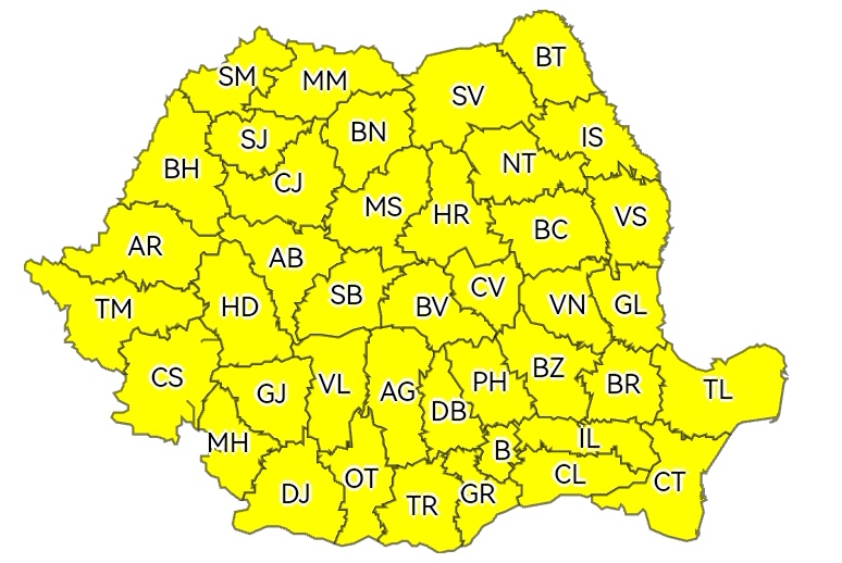 Valul de căldură se va extinde și intensifica în toată țara. Disconfortul termic va fi ridicat, iar indicele temperatură-umezeală (ITU) va depăși pragul critic de 80 de unități îndeosebi în zonele de câmpie și podiș. Temperaturile maxime se vor situa în general între 33 și 37 de grade, iar minimele se vor încadra între 17 și 22 de grade.