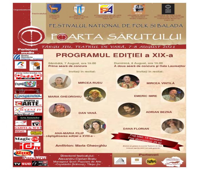 Timp de două zile, în august, capitala folkului se va muta la Târgu-Jiu, unde se va desfășura cea de-a XIX-a ediție a Festivalului Național de Folk și Baladă „Poarta Sărutului”. În perioada 7-8 august, la Târgu-Jiu sunt așteptați tineri talentați, dar și nume mari ale folkului românesc.