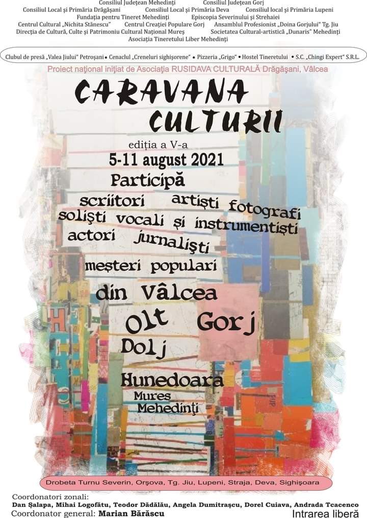 „Menționăm că turneul „Caravana Culturii Rusidava”, ediția a-V-a, se desfășoară anul acesta pe o perioadă de 6 zile (5–11 august 2021), prin autofinanțare. Pentru realizarea acestui turneu literar-artistic, mulțumim tuturor celor care îl susțin, de asemenea, mulțumim celor care îi pun la dispoziție săli de spectacol sau alte incinte de cultură și, nu în ultimul rând, mulțumim creatorilor, interpreților, cantautorilor participanți direct precum și sponsorilor și gazdelor noastre, coordonatorilor zonali (Dan Șalapa, Angela Dumitrașcu, Dorel Cuiava, Andrada Tcacenco)”, a transmis Marian Bărăscu, inițiator, coordonator general și moderator „CARAVANA CULTURII RUSIDAVA” DRĂGĂȘANI.