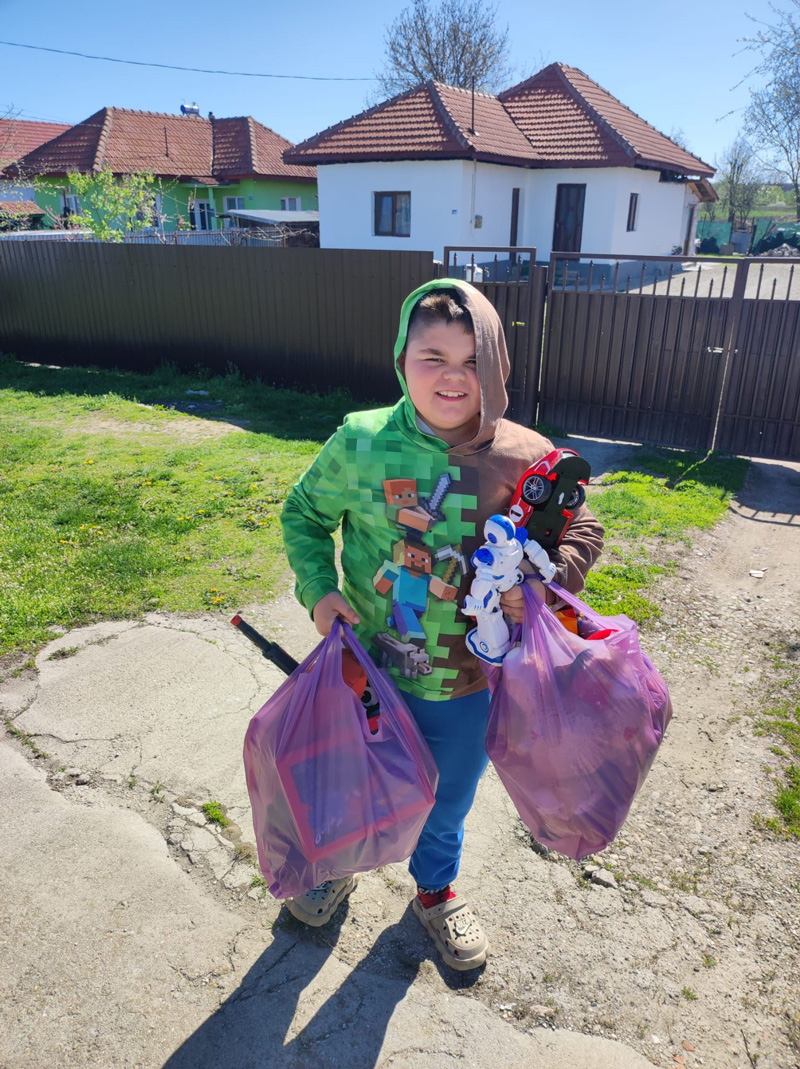 Le-am povestit că jucăriile au fost dăruite de alți copii din județ, colegi de-ai lor din grădinițe și școli, care au ales să împartă din bucuria lor.