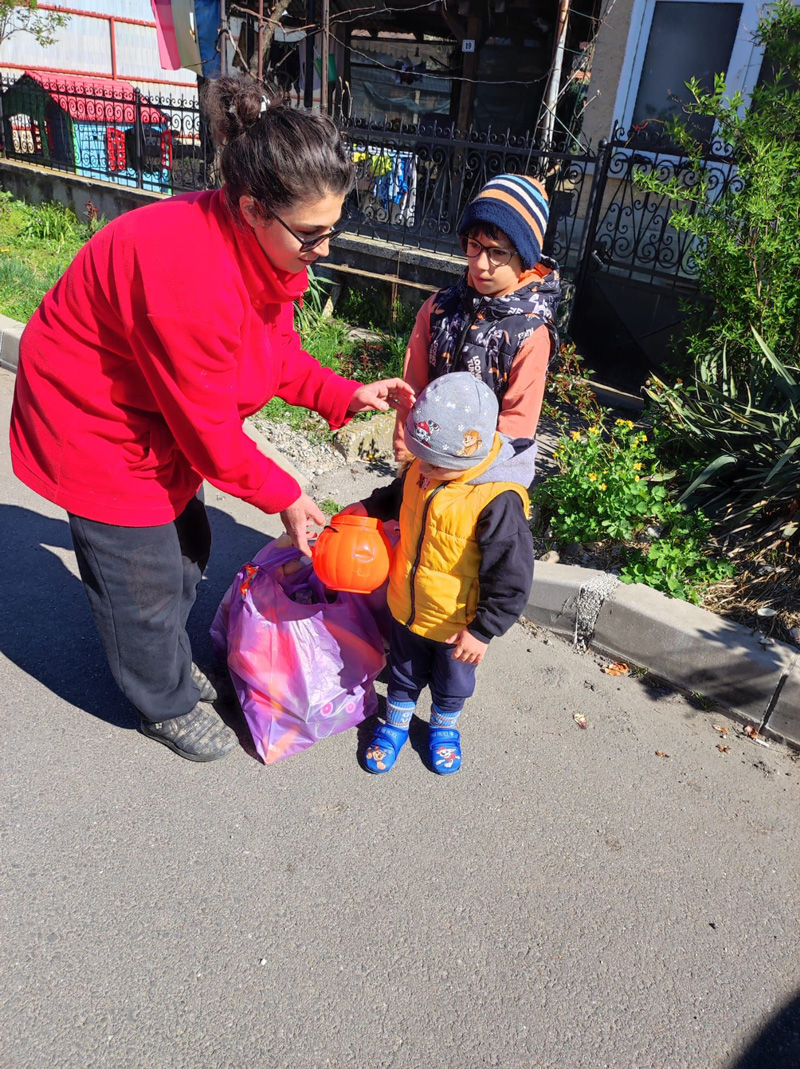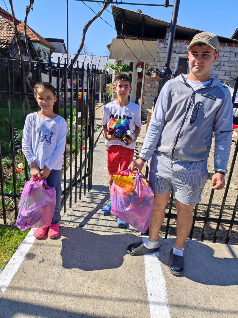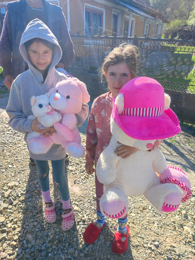 Cu ajutorul asistentului medical comunitar Simona Gridan, am ajuns în satele Cîrbești, Drăguțești, Iași, Tîlvești și Urechești, încărcați cu daruri: jucării de tot felul, hăinuțe, cozonaci și, mai presus de toate, multe zâmbete.
