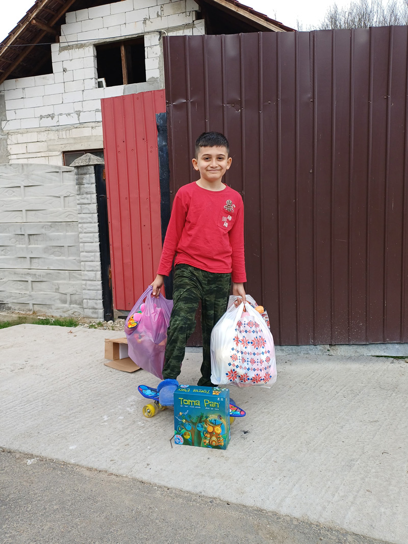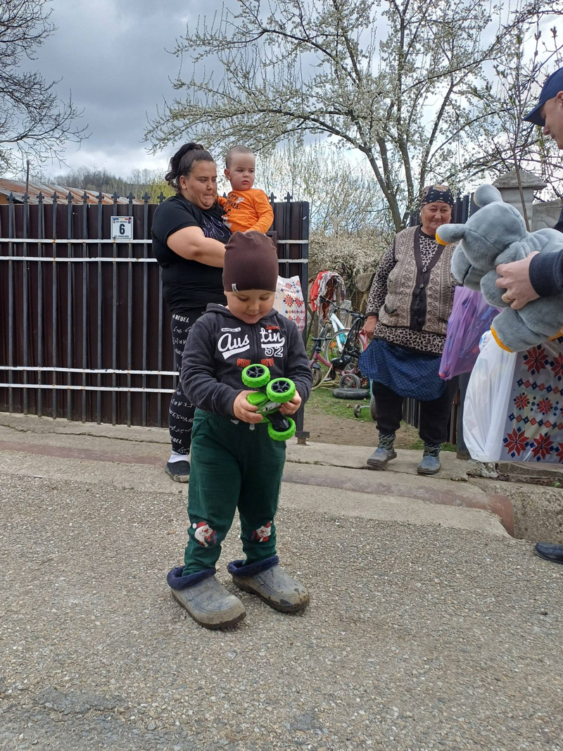 Răzvan, care are și un frățior mai mic, ne-a impresionat prin bucuria sinceră și prin curiozitatea sa fără margini. Fascinat de jucăriile primite, dar mai ales de mașinile cu care am ajuns la poarta lui, copilul ne-a urmărit cu privirea fiecare mișcare, iar ochii săi plini de lumină au spus o poveste pe care cuvintele cu greu o pot cuprinde. Pentru câteva momente, timpul parcă s-a oprit în loc. În liniștea acelei curți modeste, entuziasmul lui Răzvan și bucuria frățiorului său au transformat vizita într-o amintire de neuitat pentru noi toți. Astfel de întâlniri ne reamintesc cât de importante sunt gesturile simple și cât de mult pot însemna ele pentru un copil care are nevoie nu doar de sprijin, ci și de speranță.