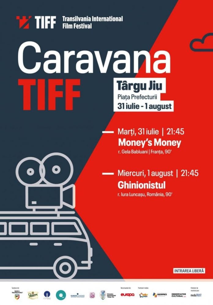 Caravana TIFF ajunge în Târgu Jiu, pe 31 iulie și 1 august, cu două filme de excepție, apreciate de publicul de pretutindeni. Cinefilii le vor putea urmări în aer liber, în Piața Prefecturii, de la ora 21:45, intrarea la eveniment fiind liberă. Marți, 31 iuliem va rula “Banii sunt Bani / Money’s Money (r. Gela Babluani | Franța, 90′)”, iar miercuri, 1 august – Ghinionistul (r. Iura Luncașu | România, 90′).