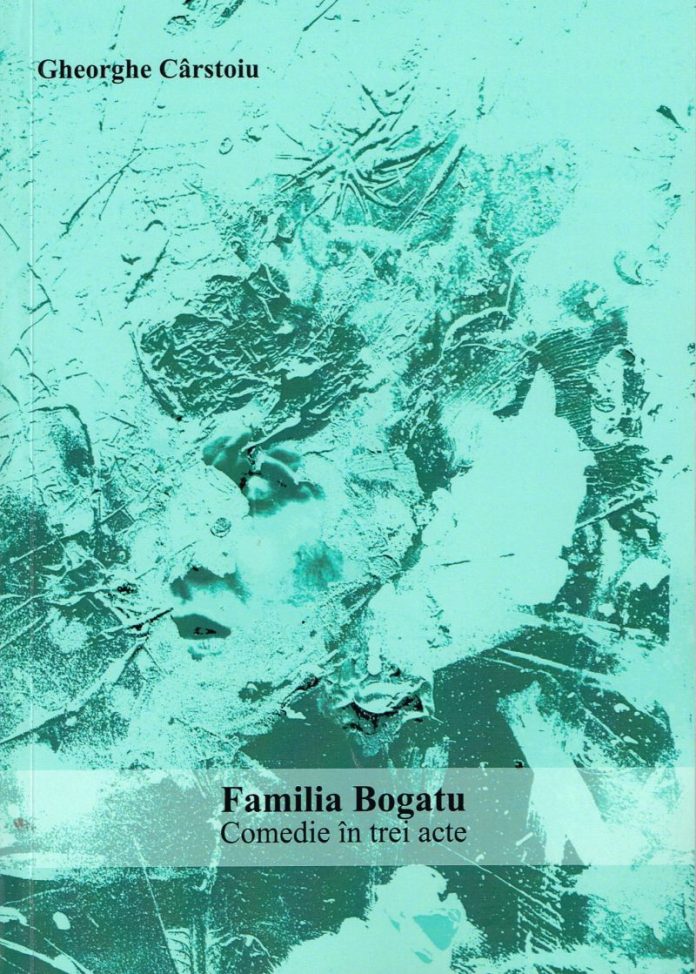 Gorjul are şi câţiva dramaturgi notabili: Lazăr Popescu, Alex Gregora, Cristian George Brebenel, Roxana Lupescu, Ion Popescu-Brădiceni, George Drăghescu, Ionuţ Luis Popa ş.a. Dar de Gheorghe Cârstoiu acu’ aflu prima dată. Habar n-am cine-i, nu-i cunosc nici biografia, meseria de bază, apartenenţa profesională, performanţele sociale etc. Poate că-i mai bine aşa, căci voi aborda opera, ci nu omul.„Familia Bogatu” e o comedie în trei acte care face haz de necaz, care e satiră şi ironie, care localizează personaje ale realităţii contemporane şi pe care le creionează verosimil, sub semnul umorului şi al reflectării unor situaţii de fapt din România de după 1990.Cu o ariergardă de intimidat, în urmă, Gheorghe Cârstoiu calcă pe urmele lui Băeşu şi Mazilu, nu se lasă intimidat de marile modele Sebastian şi Muşatescu, şarjează spumos şi autentic, într-un limbaj tranzitiv, de-o oralitate translucidă, de-o cumuitate exoterică, menită să comunice un mesaj urgent, despre o lume decăzută moral şi în genere stând prost la capitolul caracter.Atmosfera în care (anti)eroii lui Gheorghe Cârstoiu se exprimă, ca protagonişti reprezentativi ai clasei lor de parveniţi… capitalişti, este una a compromisurilor şi evidenţelor de tot felul.Racilele şi derizoria existenţă cotidiană devoalate de cele trei acte chiar devin efigii ale unei epoci de tranziţie (dinspre nimic spre alt… nimic – n.m.). Evoluţia „familiei Bogatu” şi a „familiei Ispitescu” este o „involuţie” (ca în teatrul lui Lazăr Popescu, bunăoară – n.m.) de tip expresionist-postmodernist, căci la anul 2012, luna noiembrie întrucât capitalismul nu le-a priit, Domnul Bogatu e prost dispus (în sens caragialian – n.m.) ca şi „Conu’ Leonida faţă cu reacţiunea”.Detaliile scenografice sunt verosimil desenate, personajele – pentru început Gicuţă Bogatu şi Despina Bogatu – intercomunică autentic, iar limba folosită în convorbirea lor coincide perfect cu vocea lor interioară, reprezentând o clasă socială năclăită în suficienţă de sine, mediocritate, frustrări, cu inima îmbâcsită şi pe cale să plesnească precum o păstaie prea coaptă ori cu corpul îmbuibat cu atâtea medicamente.Gicuţă Bogatu cade în mrejele Ameliţei, o panaramă, semnează ca girant pentru Spiru, vărul amantei, acesta ridică de la bancă mulţi euroi şi fuge în Italia, lăsându-şi fraierul de amic dator vândut şi care se trezeşte, brusc, pe drumuri, nenorocindu-şi familia care din centrală redevine periferică.Narcis e un „copil sufletist, dar fără noroc” – cum îl caracterizează Despina Bogatu. Sofica Pânzaru – poreclită Internet – care navighează pe… Internet e la curent cu toată planeta. Ea poate să intre şi să ia date dacă cineva – chiar soţul Despinei dacă o fi cazul – este arestat, în urma unor fapte săvârşite împotriva ţării, comiteri de crime şi violuri. Poate să o informeze pe Despina în legătură cu băncile care au acordat credite în franci elveţieni şi de miile de datornici.Scenele actului I îşi urmează mecanic datul în cărţi, întoarcerea de la cumpărături şi de la bancomat, intenţia din bucătărie a lui Narcis, Sofica cerşind paharul cu ulei, Maldăru cerând banii de chirie.În actul II, Gheorghe Cârstoiu aduce în scenă noi tipologii ale epocii de tranziţie spre… capitalism: Cireşica Ispitescu, Amedeo Ispitescu, Titi Frumosu. Actul II nu face rabat la umorul în definitiv minor, el însuşi mediocru (adică mic burghez – n.m.). Cireşica şi Amedeo se înşeală reciproc, fiecare având, ea amant pe Mazilu, el amantă pe Lola. Morala e la îndemână, antiproustiană: „Timpul le rezolvă pe toate.” Apoi Titi Frumosu, şoferu’, succint portretizat, balzacian ori camilpetrescian, bolnav de ciroză, filozofează despre destin cu Gicuţă Bogatu care şi el e de părere că „destinul ghidează viaţa, pe drumuri diverse, într-o perfectă simetrie sau o încurcă, încât nu mai ştii pe unde s-o iei.”Cu asemenea replici, piesa de teatru a lui Gheorghe Cârstoiu, cu cele trei acte, reprezintă o radiografie cu mai multe straturi şi repoziţionări vectoriale a unei societăţi româneşti poluate „şomerizate”, încât doar „montarea unor filtre speciale” ar epura-o de toate păcatele, racilele şi viciile ei; dar – vorba Ionicăi Botănel: arma persiflării e ineficientă, poate cea a intercomunicării să mai aibă ceva efect. Oricum, din comedie, piesa de teatru devine dramă: românii se înstrăinează de patrie, în căutarea unui loc de muncă… În orice caz, parabola lui Gicuţă Bogatu (de la pagina 45) cea cu sfârcul-buton din deasupra creierului e… absurdă, dar simptomatică: Ori reuşeşte „transpunerea”, cum consideră Gicuţă, ori sinuciderea, în opinia Despinei, făcându-şi cruce. În parabola corpului, Bogatu îl citează pe Ion Creangă (cel din „Popa Duhu”: e vorba de parabola duhului şi a cadavrului). Aşadar, „povestea teatrală” a lui Gheorghe Cârstoiu e scrisă, iacă-tă, şi intertextual (adică postmodern).Cu atât mai preţioasă e contribuţia lui Gheorghe Cârstoiu la săracul patrimoniu, al acestui gen dramatic, gorjean.