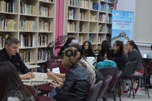 nocturna (6)Medic, avocat, economist, profesor, instructor auto, arhitect, cosmetician, artist plastic, informatician, coregraf, muzician – toate acestea s-au aflat pe lista profesiilor despre care ”cărțile vii” le-au vorbit tinerilor în ceea ce s-a dovedit a fi o experiență plăcută și interesantă pentru ambele părți. Elena Roată, de exemplu, le-a răspuns tinerilor la întrebările legate de profesia de dascăl și s-a declarat încântată de curiozitatea și sinceritatea lor. “A fost o experiență extraordinară, unică pentru mine, bănuiesc că și pentru cei care au venit pentru a afla, din curiozitate măcar, ce înseamnă să fii dascăl, de ce mi-am ales această meserie. Este o experiență extraordinară pentru că i-am văzut doritori să afle și prejudecățile și adevărurile despre meserie. De ce mi-am ales-o, care a fost motivația principală, ce a însemnat școlaritatea, ce a însemnat drumul până la a ajunge dascăl – acestea au fost cele mai frecvente întrebări. Au mai fost și altele, printre care dacă suntem respectați de societatea de astăzi, dacă funcționează această relaționare între școală, familie și societate și cum suntem plătiți. Au minți deschise (n.red. tinerii) și au și așteptări de la răspunsurile pe care le dăm, au o dorință teribilă de a fi sinceri. Cred că ei, de fapt, asta au căutat: să afle, cu sinceritate, punând întrebări cu sinceritate, aflând cu sinceritate, cum stau lucrurile cu meseria de dascăl”, a spus Elena Roată. O experiență interesantă a fost și pentru Costi Crăciun, instructor auto, care a trebuit să le răspundă tinerilor la foarte multe întrebări. “M-au întrebat ce riscuri presupune meseria de instructor auto, dacă este greu lucrul cu oamenii, cât de mult durează o ședință de pregătire practică, cât de mult durează toată școala, de la ce vârstă pot să înceapă școala de șoferi, cum sunt programările la probele de traseu…tot ce-i interesa. A fost o experiență foarte interesantă, mi-a plăcut și aș mai repeta-o. Este prima dată când particip la o astfel de acțiune”, a spus acesta. O altă “carte vie”, solicitată în mod deosebit de tinere, a fost Diana Ilcău, cosmetician. “A fost o experiență foarte interesantă. Toate domnișoarele care au venit au vrut să știe ce înseamnă, ce trebuie să faci, la ce să te aștepți de la meseria respectivă. În primul rând, au întrebat ce trebuie să faci, care sunt pașii pe care trebuie să-i urmezi și ce înseamnă să faci cosmetică, care este mulțumirea sufletească, financiară, etc., care este costul să-ți deschizi o afacere, cât de mult timp trebuie să investești în perfecționare și să stai întotdeauna la curent cu noutățile. M-au mai întrebat și ce le interesa în mod personal. Nu este prima dată când sunt pusă în situația de a le vorbi unor tinere despre această profesie. Mi s-a întâmplat de foarte multe ori să am persoane tinere, din liceu, care să vină să mă întrebe așa ceva și am avut surpriza ca unele dintre să urmeze cu succes această carieră. Chiar nu mi-a venit să cred. Nu e o meserie plictisitoare; este foarte plăcută, trebuie să interacționezi cu omul”, a spus aceasta. Cei care au dorit să afle mai multe despre ce înseamnă să fii muzician și dascăl în același timp l-au putut “împrumuta” pe Constantin Argint, care, de asemenea, s-a declarat încântat de întreaga experiență. “Sunt prima dată la o acțiune de genul acesta, dar îmi place să vorbesc destul de mult despre cum am ajuns eu la întâlnirea cu meseria de dascăl. (…) Copiii sunt interesați de chestia asta. Nu am discutat cu ei strict despre muzică, majoritatea dintre ei fiind elevi. Am discutat și despre muzică, și despre formarea lor actuală, despre către ce se îndreaptă pentru că sunt copii de ani terminali de liceu, alții sunt mai tinerei. Am mai discutat și despre ce vor ei să devină. (…) Acțiunea în sine este într-adevăr bună. Chiar le-am spus să încerce să o facă măcar o dată la 2-3 luni. Poate copiii învață ceva din treaba asta”, a spus acesta. Elena Roată, Costi Crăciun, Diana Ilcău și Constantin Argint sunt doar patru dintre “cărțile vii” disponibile vineri seara la bibliotecă. Pe “rafturi” s-au mai aflat: Ion Alexandrescu (actor), Corneliu Răducan Morega (arhitect), Diana Ciurea (artist plastic), Camelia Băluțoiu (avocat), Ion Valeriu Saraolu (coregraf), Dorel Chirițescu (economist), Lucian Dobroiu (informatician), Florentina Iliescu (medic), Adelina Ungureanu (psiholog), Marinela Pîrvulescu (profesor) și Carlos Tașcău (salvator montan). Toate aceste “cărți” s-au bucurat de succes, dovadă fiind că, la final, a durat un timp până tinerii s-au putut “dezlipi” de ele și nu puțini dintre ei au întrebat când vor avea ocazia să le întâlnească din nou.