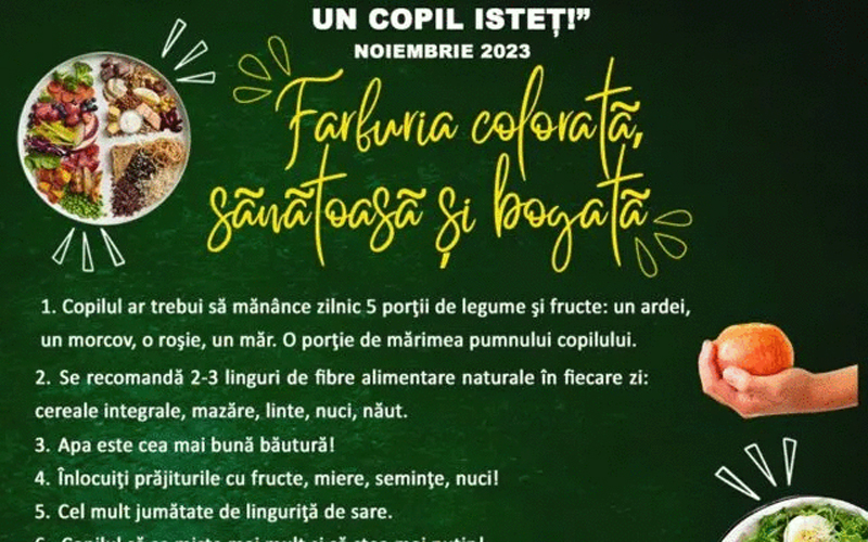 Ministerul Sănătății, cu sprijinul Institutului Național de Sănătate Publică și al direcțiilor de sănătate publică, desfășoară pe parcursul lunii noiembrie campania „Ce, cât și cum mănâncă un copil isteţ!”. Campania se adresează copiilor din ciclul primar de învățământ, părinților acestora și cadrelor didactice. Se dorește informarea și educarea copiilor, părinților și cadrelor didactice privind principiile unei alimentații sănătoase la vârsta școlară. De asemenea, campania vizează creșterea conștientizării problematicii obezității infantile și informarea părinților despre beneficiile unei alimentații sănătoase care să prevină obezitatea în rândul copiilor și complicațiile acesteia pentru viitorii adulți. „Deși ne gândim la obezitate mai degrabă ca la un factor de risc pentru mai multe tipuri de afecțiuni (boli cardiovasculare, diabet zaharat, unele cancere: de endometru, de esofag, gastric, de ficat), obezitatea este o boală cronică, recunoscută ca atare de Organizația Mondială a Sănătății”, anunță Ministerul Sănătății. Obezitatea infantilă constituie una dintre cele mai grave probleme de sănătate din secolul XXI. O alimentație bogată în legume și fructe, consum de cereale integrale, înlocuirea prăjiturilor cu fructe, consumul de apă, nu de alte băuturi îndulcite, limitarea consumului de sare la cel mult jumătate de linguriță pe zi, încurajarea copilului să facă mișcare cel puțin 60 de minute în fiecare zi, toate sunt măsuri de intervenție aflate la îndemâna părinților pentru a preveni problemele de supraponderalitate și obezitate.