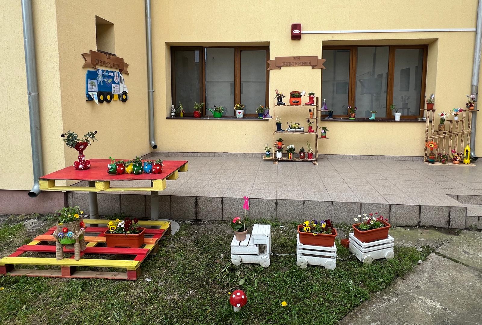 Știm că deprinderile bune se formează la copii încă de mici, iar grădinița, ca instituție de învățământ, are menirea și obligația să pună bazele solide în formarea adultului de mâine, educația pentru protecția mediului având un rol foarte important, luând în considerare viitorul planetei, ca „spațiu locativ” al omenirii în epoca noastră și în cele ce vor urma. Toate obiectele realizate în timpul derulării proiectului au fost expuse în curtea grădiniței pentru a fi admirate de către cei aproximativ 400 de preșcolari care sunt înscriși această instituție și, bineînțeles, de părinții, bunicii, ori reprezentanții legali ai acestora, unii dintre ei implicându-se direct în confecționarea lor, ca beneficiari indirecți ai educației și ca membrii activi ai acestei comunități școlare, și aparținători, la cele 4 grupe implicate în această fază a derulării proiectului – grupele mici: „Piticii” și „Ștrumfii” și grupele mari: „Florile” și „Puișorii moțați”.