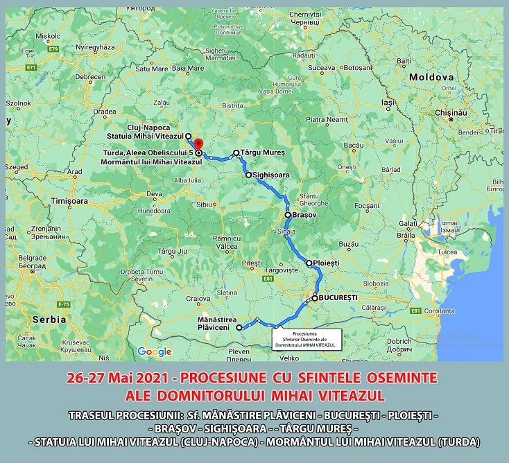 Vom aduce osemintele Voievodului de Țară, cu slavă și pietate, de la Mânăstirea Plăviceni, ctitoria Doamnei Stanca, soția sa, la Cluj-Napoca! Pelerinajul osemintelor continuă pe 27 Mai, la Turda, locul asasinării, apoi se reîntorc la Mânăstirea Plăviceni, unde au fost descoperite în 2010.
