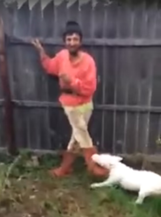 În filmuleţul celebru, un tânăr este muşcat de un câine, iar în loc să se apere, trage din ţigară şi îl strigă pe stăpânul patrupedului, Cristi.